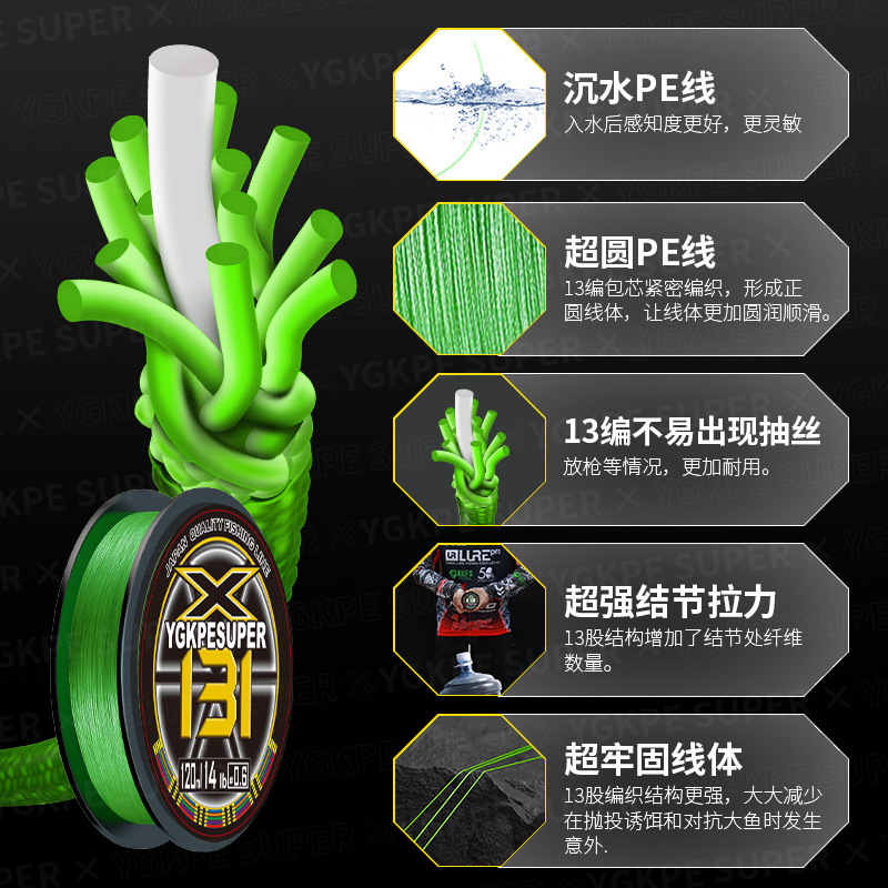 12-braided core-wrapped fishing line, authentic 131 Luya special pe line, ultra-smooth, long-range, wear-resistant, powerful horse and black fishing line