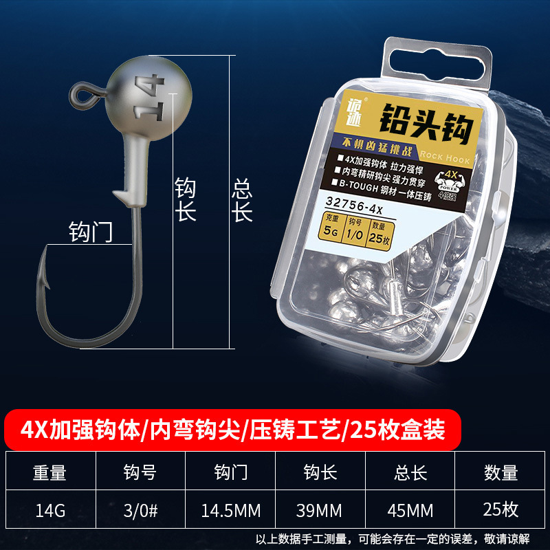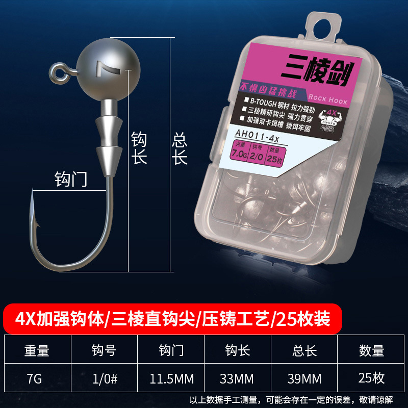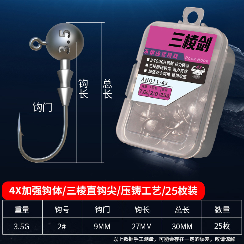 25 boxes reinforced triangular hook tip lead head hook special soft bait for mandarin fish tip t tail die-cast road lead head hook