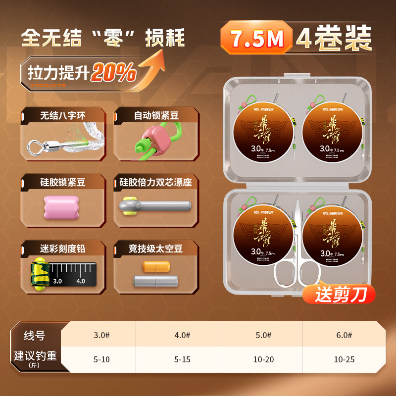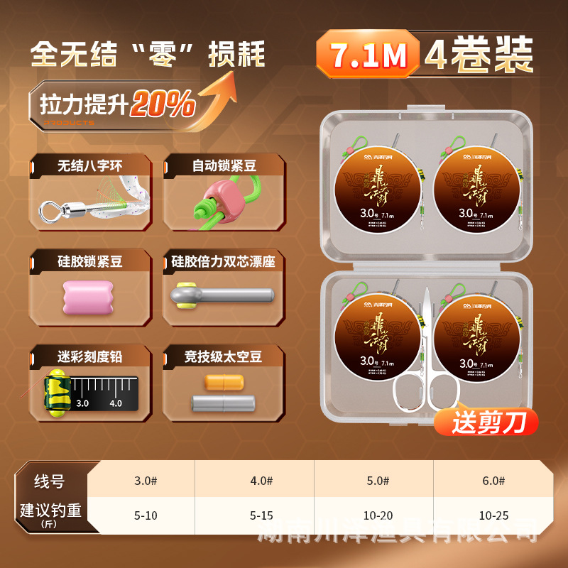 4-roll package] The finished line set of Chuanze main line has no knots and is tied. The suit has strong pulling force, imported raw silk fishing line