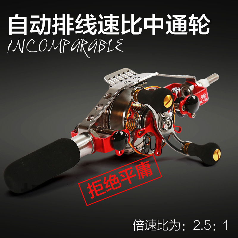 All-metal middle channel wheel automatic wire arranging speed ratio front driving wheel fishing rod modification inner routing middle channel rod fishing wheel