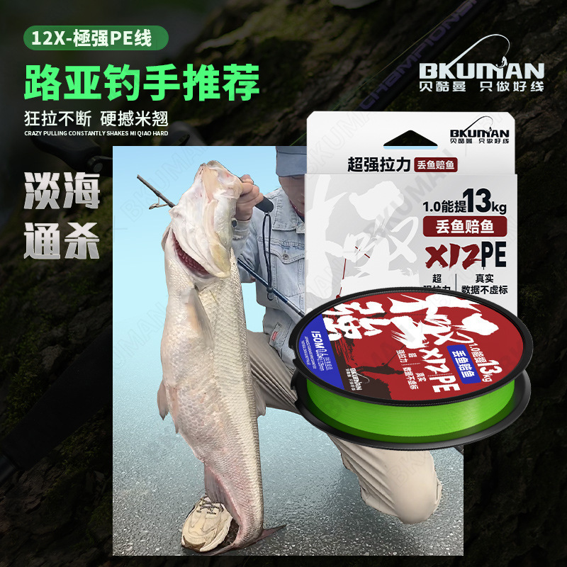 BKUMAN Japan 12 series pe line Asian and distant casting line High-horsepower fishing line Fishing line Fishing gear wholesale fishing net