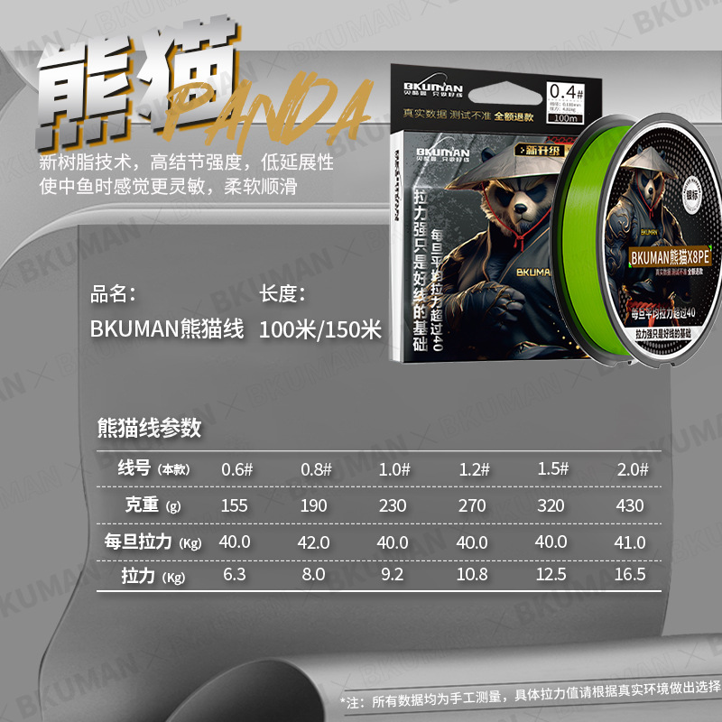 BKUMAN2025 new panda line fishing main line pe line super smooth strong pulling fishing line sub-line fishing gear wholesale