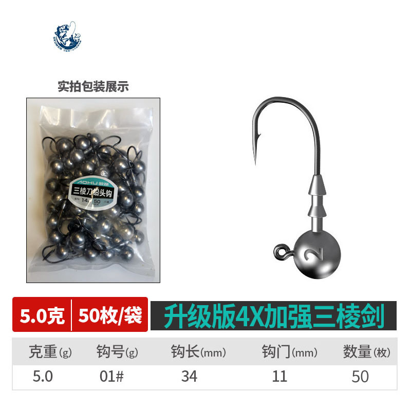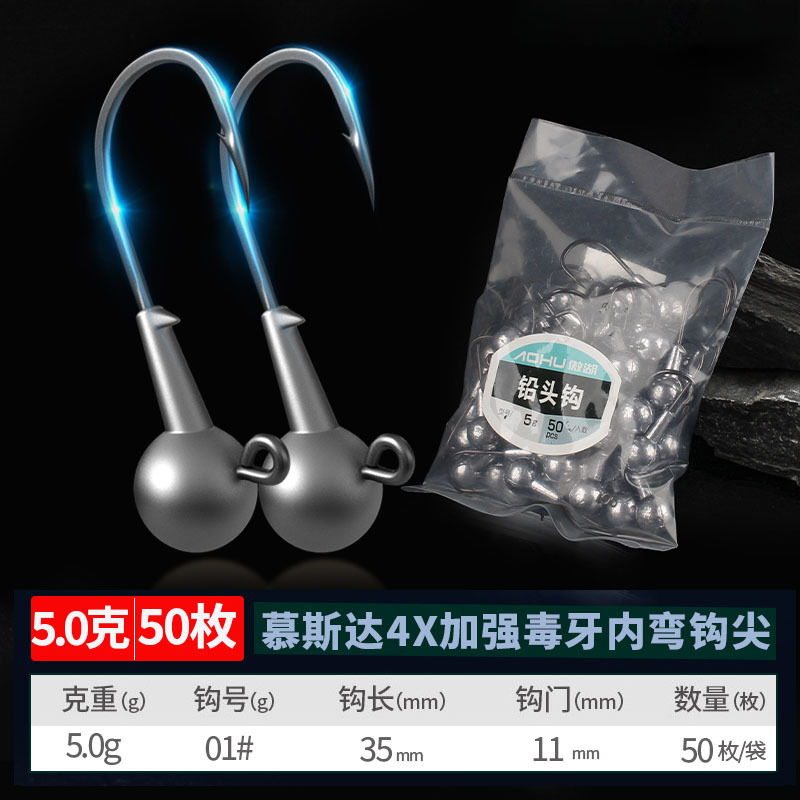 Boxed new style lead head hook primary color reinforced 50 Luya anti-hanging bottom micro object soft bait T-tail mandarin fish with tilted mouth perch