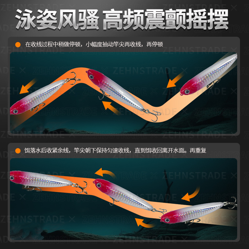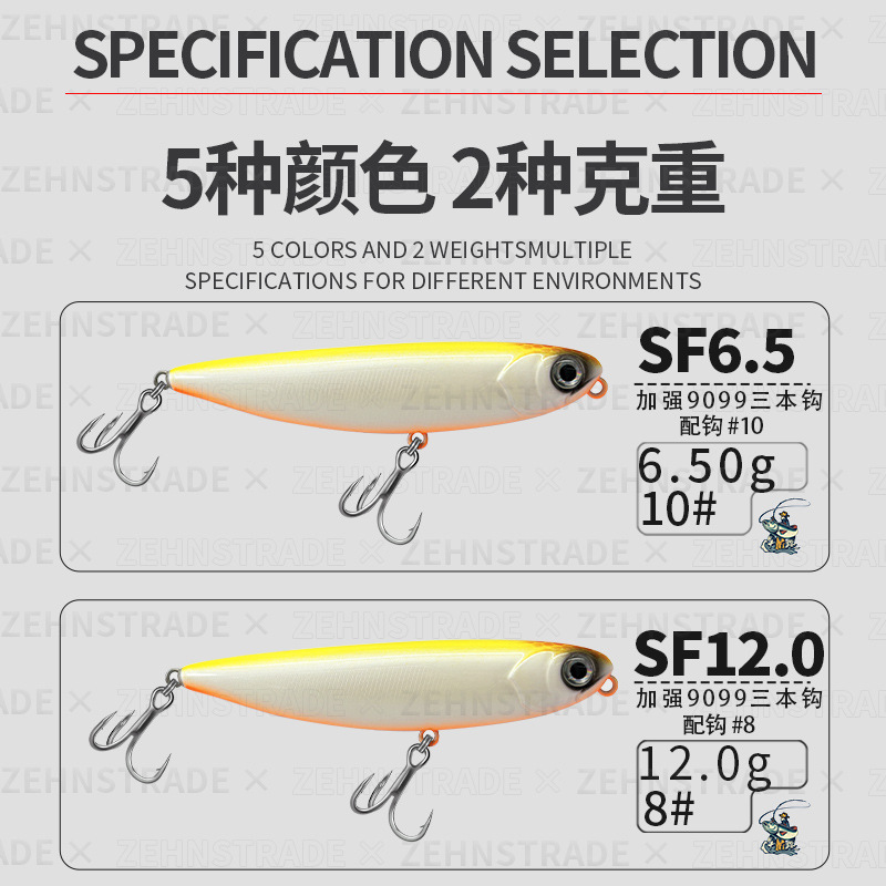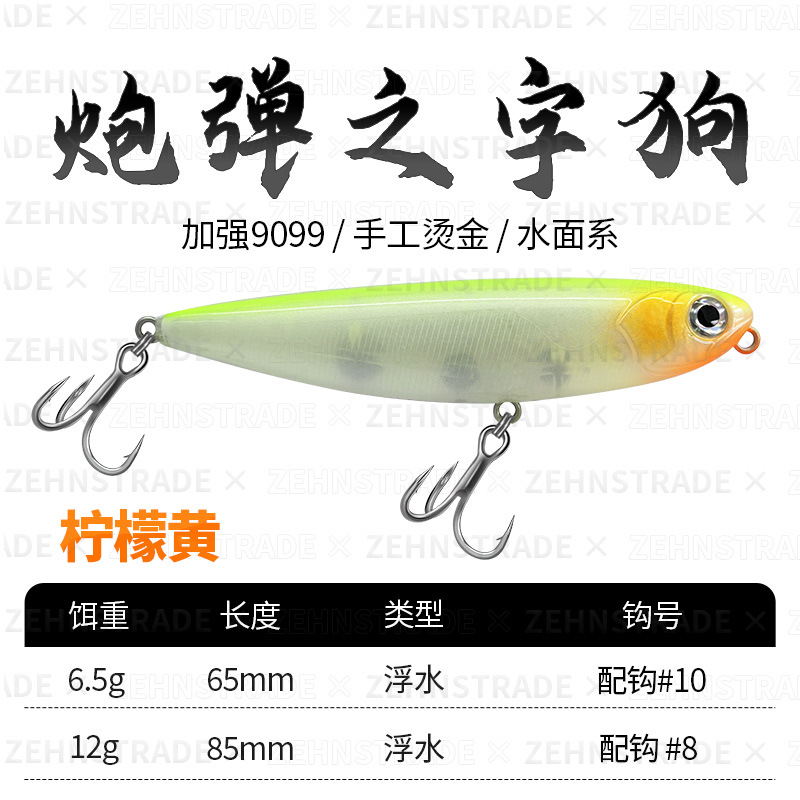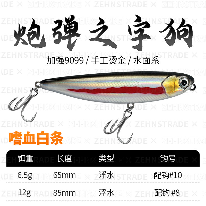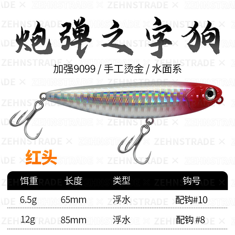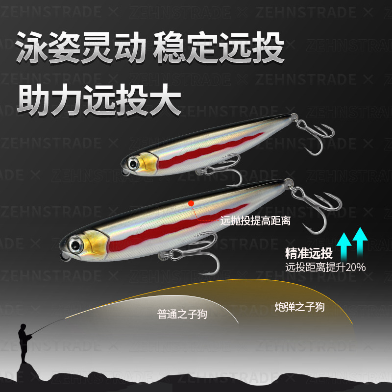 Cannonball word dog floating water pencil on the water surface Luya long throw up-billed perch army fish fake bait Luya bait floating water hard bait