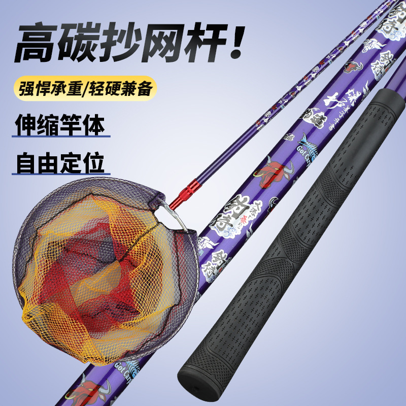 Carbon fishing net pole Fishing support pole Super hard Telescopic fishing net Reading net Head Folding fishing net Light hard