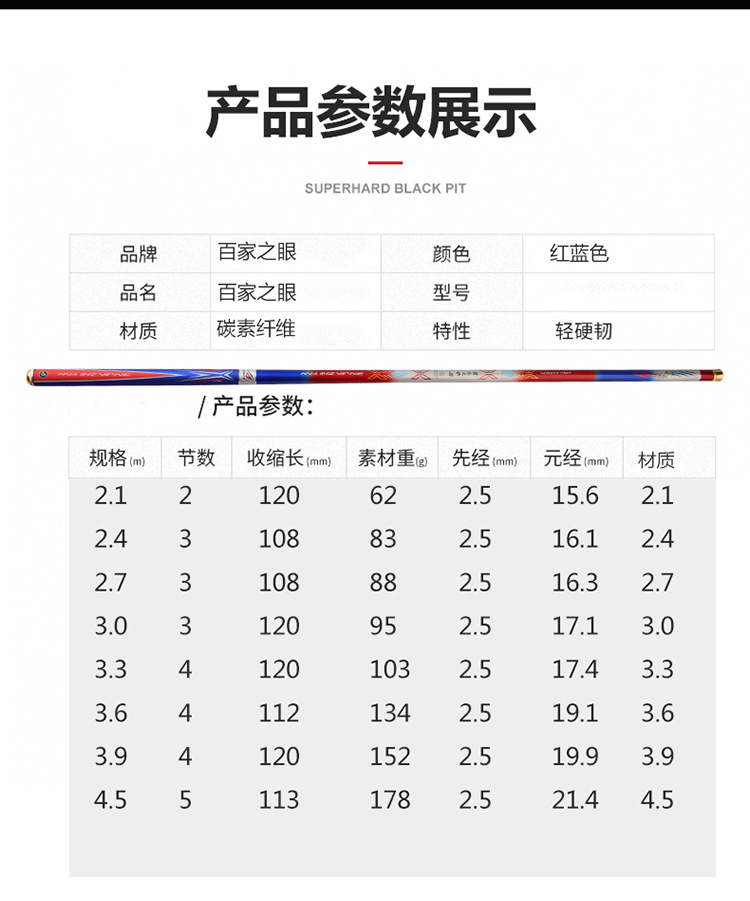 Carbon ultra-light and hard 19 adjustable platform fishing rod black pit pole competitive pole winter fishing greenhouse pole fish direct flying pole manufacturer wholesale