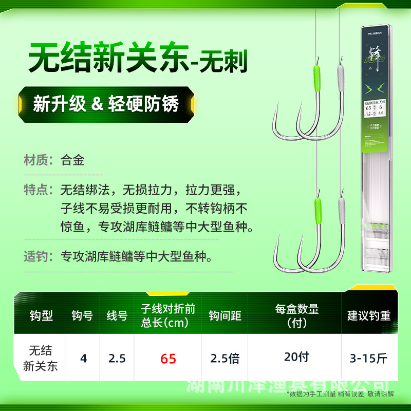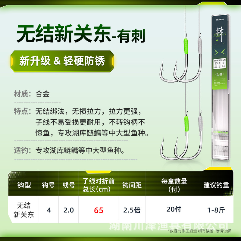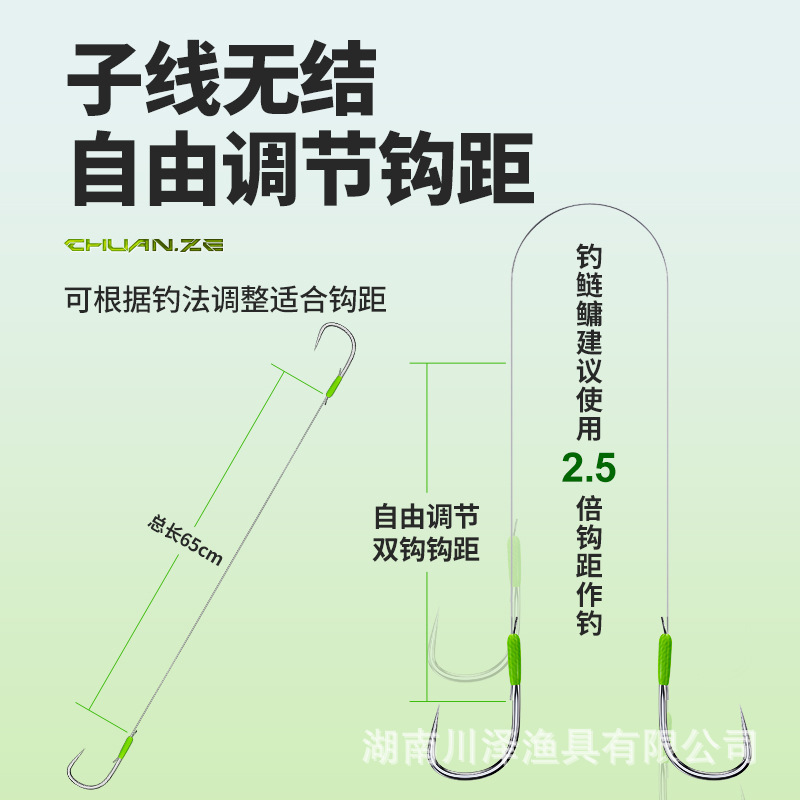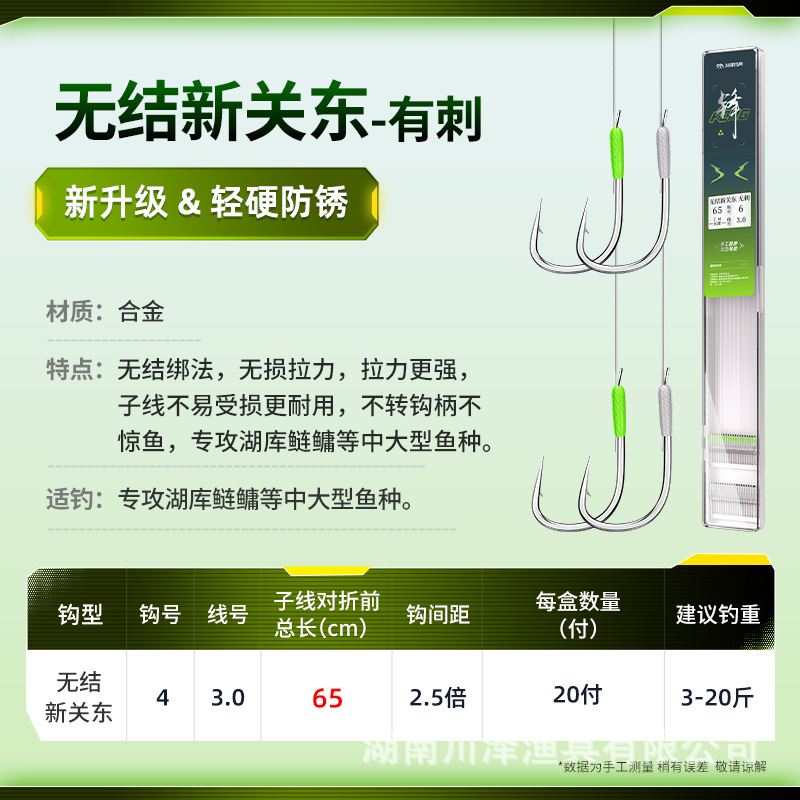 Chuanzawa Knot Knot New Kanto Sub-Line Double Hook Finished Silver Carp Hook, Fish Carp Hook, Anti-entanglement Fish Hook, Fishing Equipment