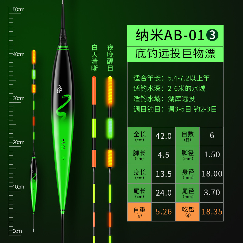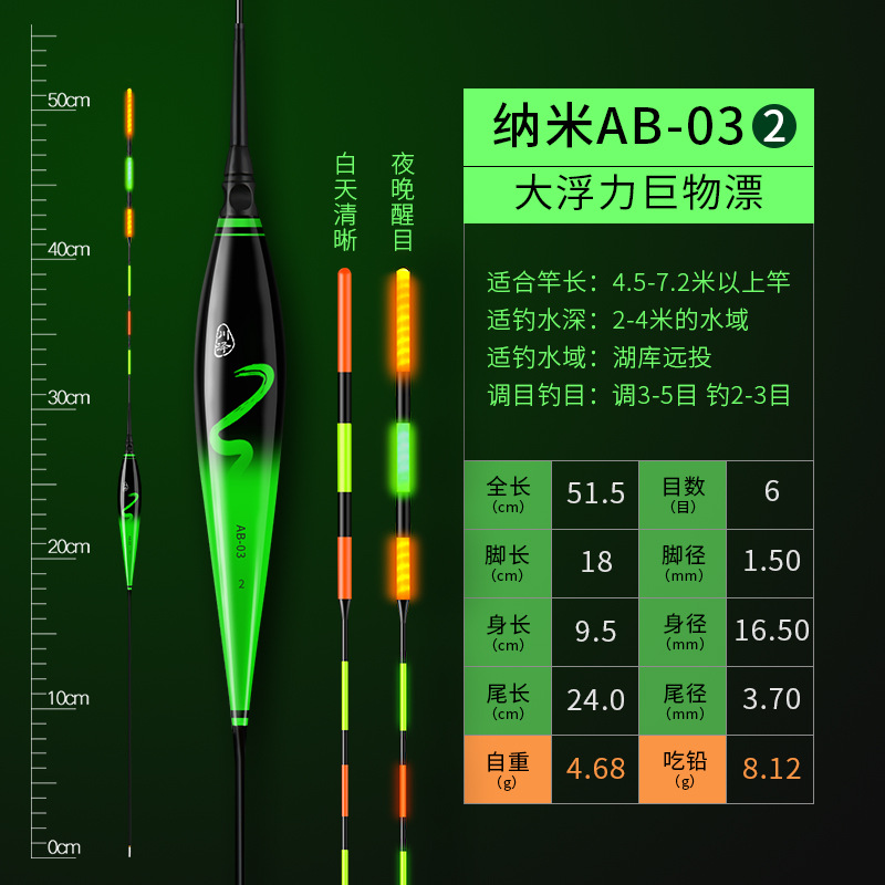 Chuanze AB large object luminous float silver and bighead carp float day and night dual-use thick and eye-catching bite hook color change long-distance throw float float bottom fishing
