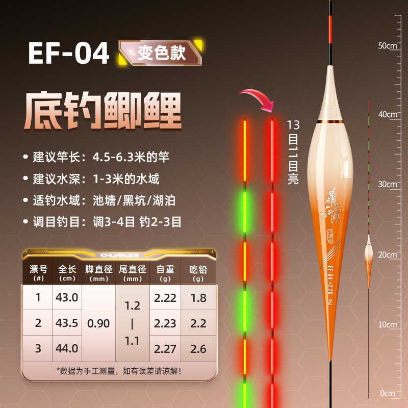 Chuanze Dingjian Jianghu Electronic Drift is highly sensitive and eye-catching crucian float bite hook discoloring float hard tail integrated luminous float