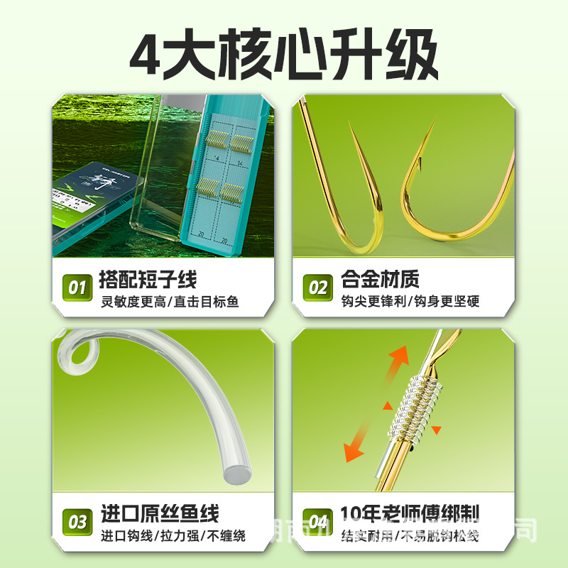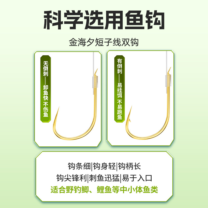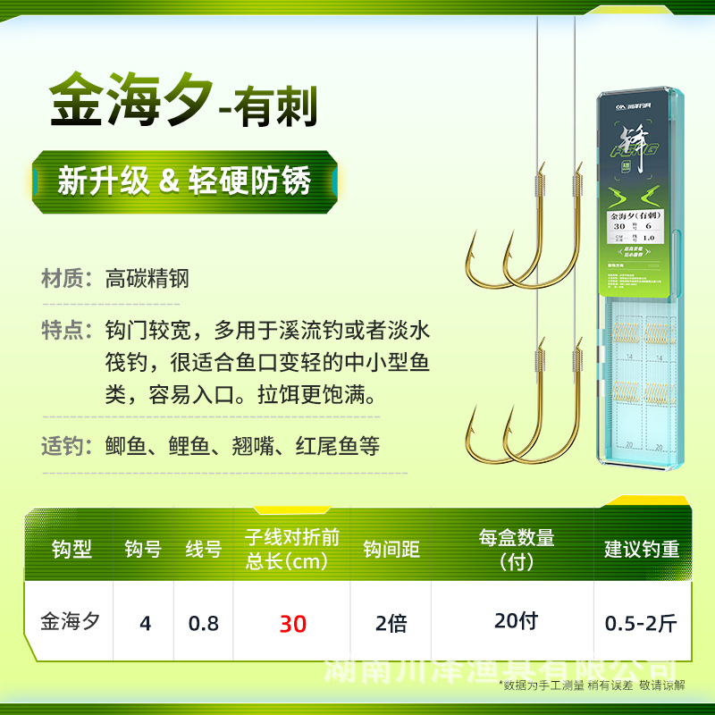 Chuanze Jinhai Xi short sub-line double hooks, authentic, tied finished hooks, hand-tied, anti-entanglement wild fishing carp hooks
