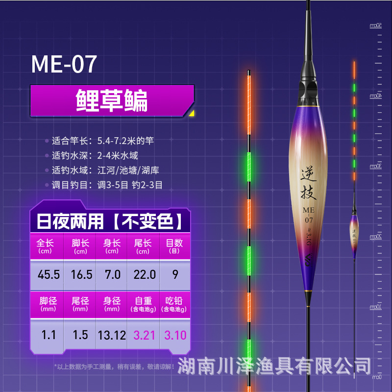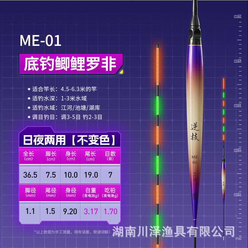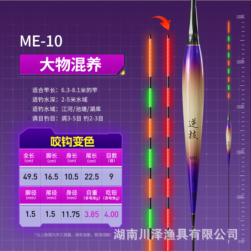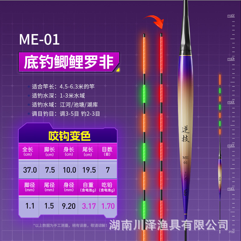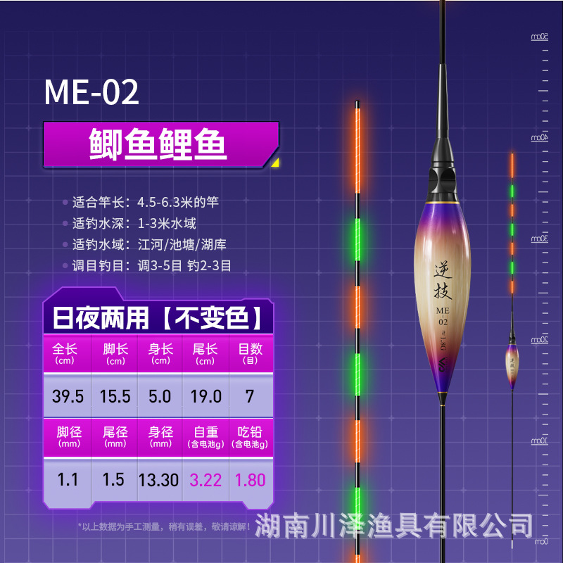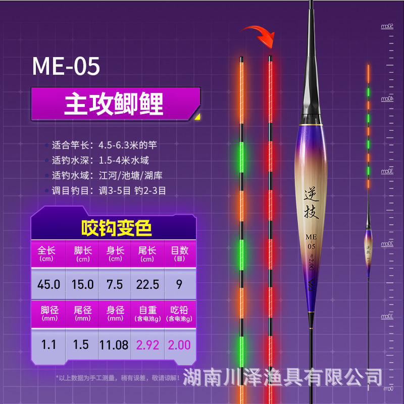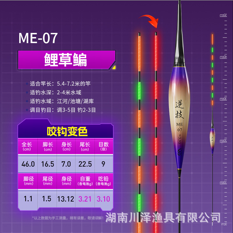 Chuanze ME reed luminous electronic float high-sensitive light-mouth carp float water shadowless luminous float biting hook color float