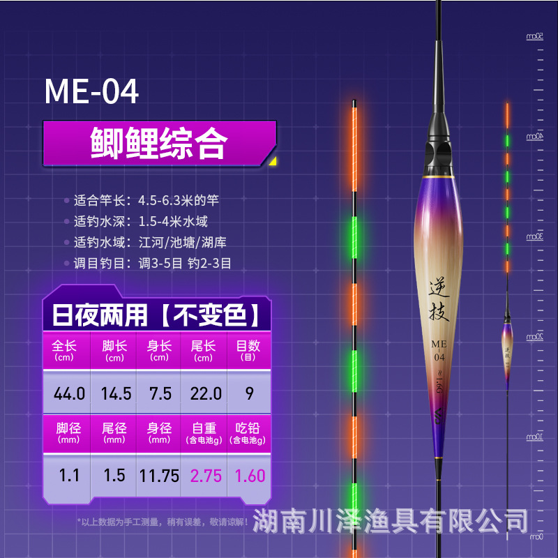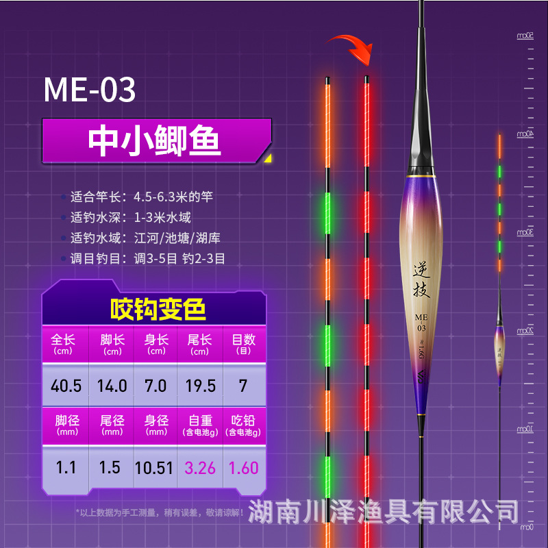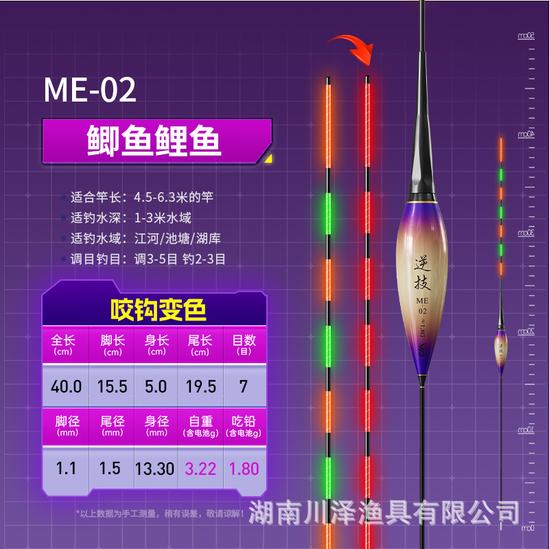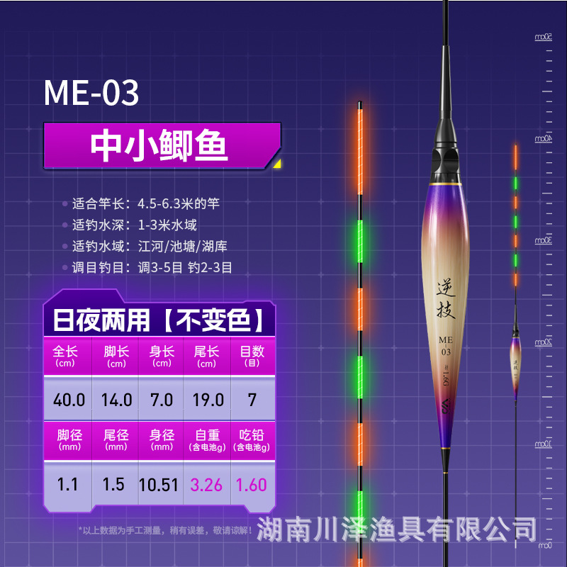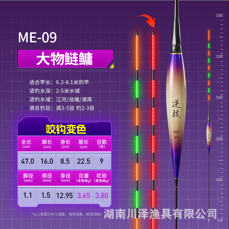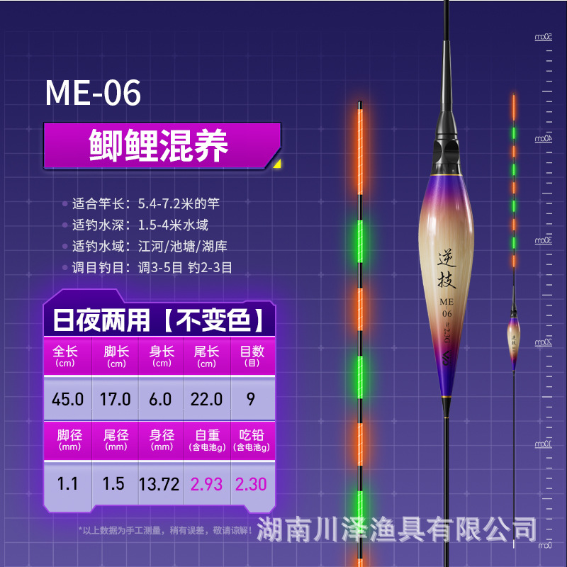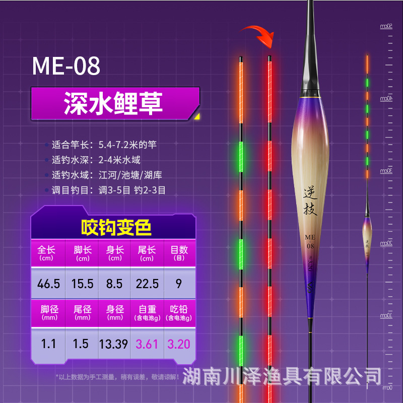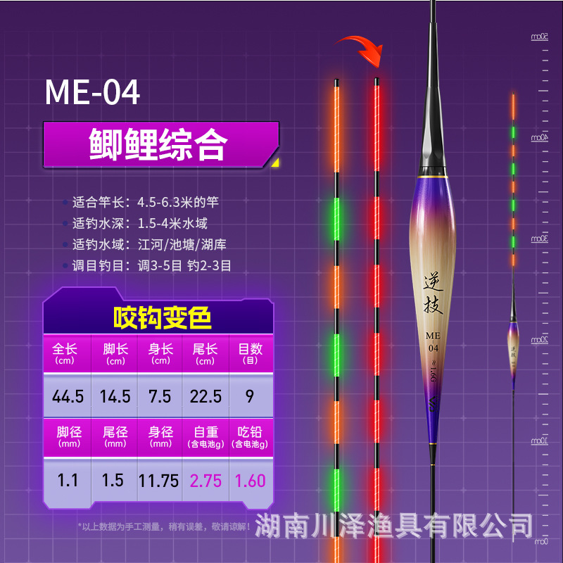 Chuanze ME reed luminous electronic float high-sensitive light-mouth carp float water shadowless luminous float biting hook color float
