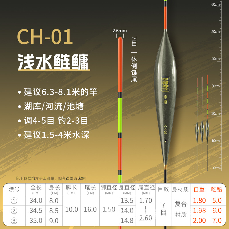 Chuanze Manniu CH silver carp and bighead carp float integrated inverted cone tail large object fish float is highly sensitive, eye-catching and clear explosion-proof fishing float