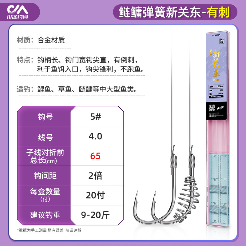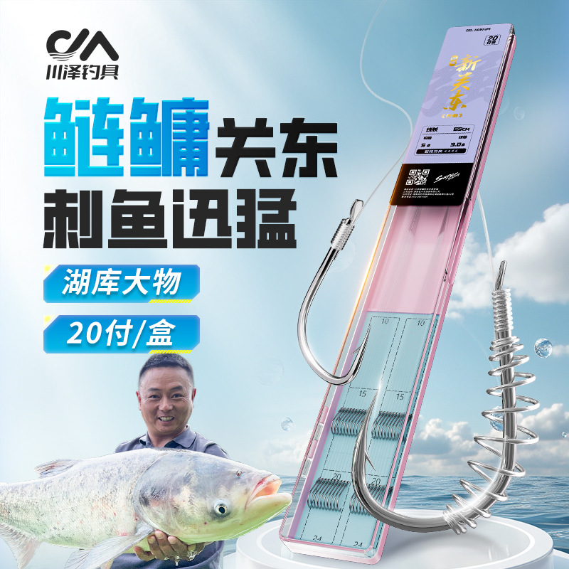 Chuanze New Kanto Fish Hook Line Double Hook Finished Products, Tied Anti-winding Hook Set, Wild Fishing Lake Warehouse, Large Silver Carp Hook