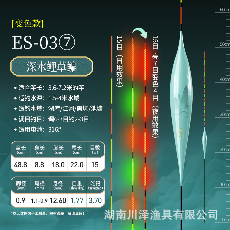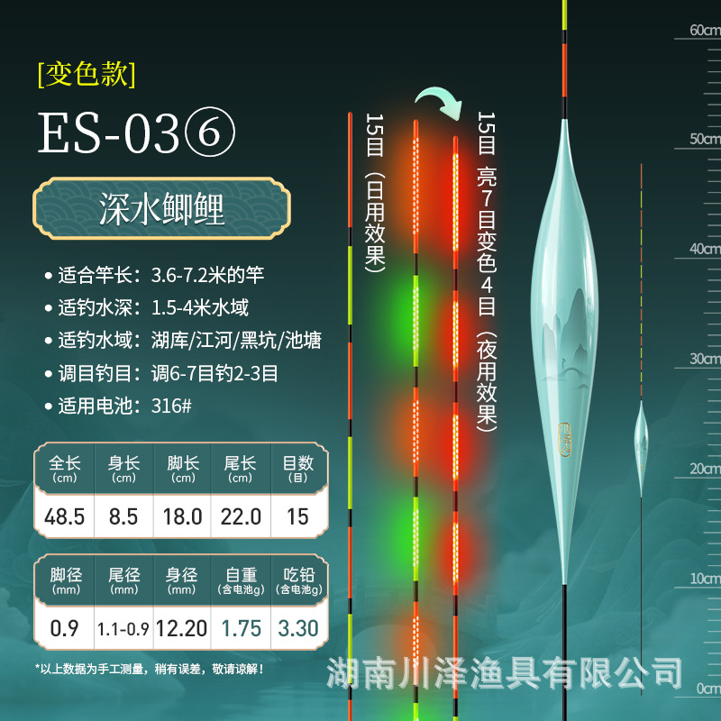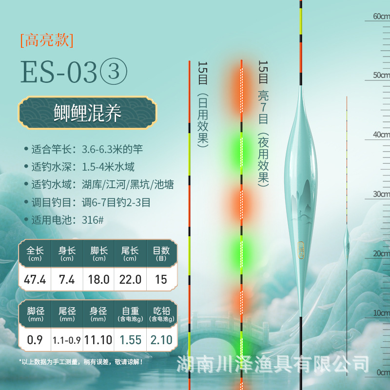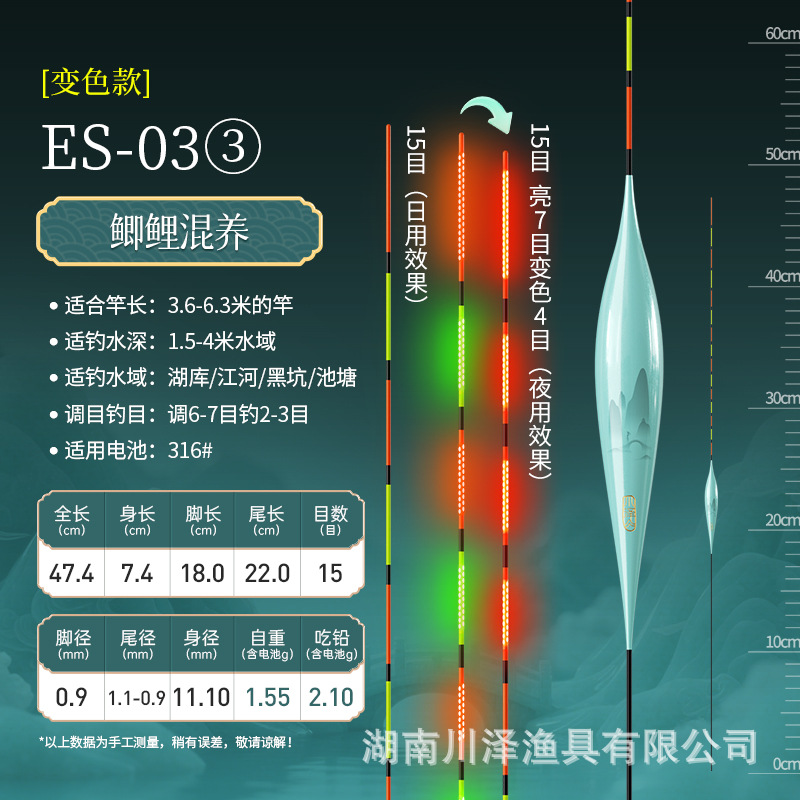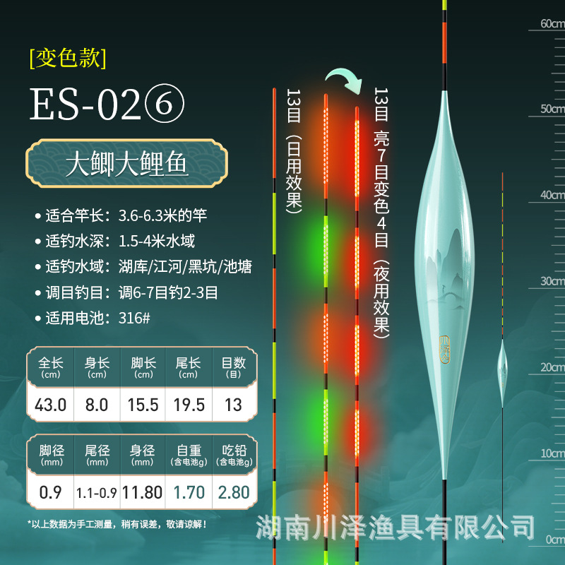 Chuanze OLED luminous float, highly sensitive and eye-catching float, biting hook, color changing carp, electronic fish float, soft light, day and night