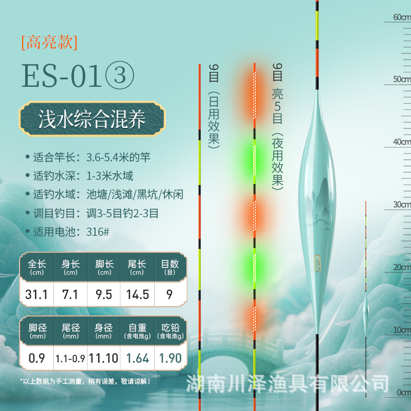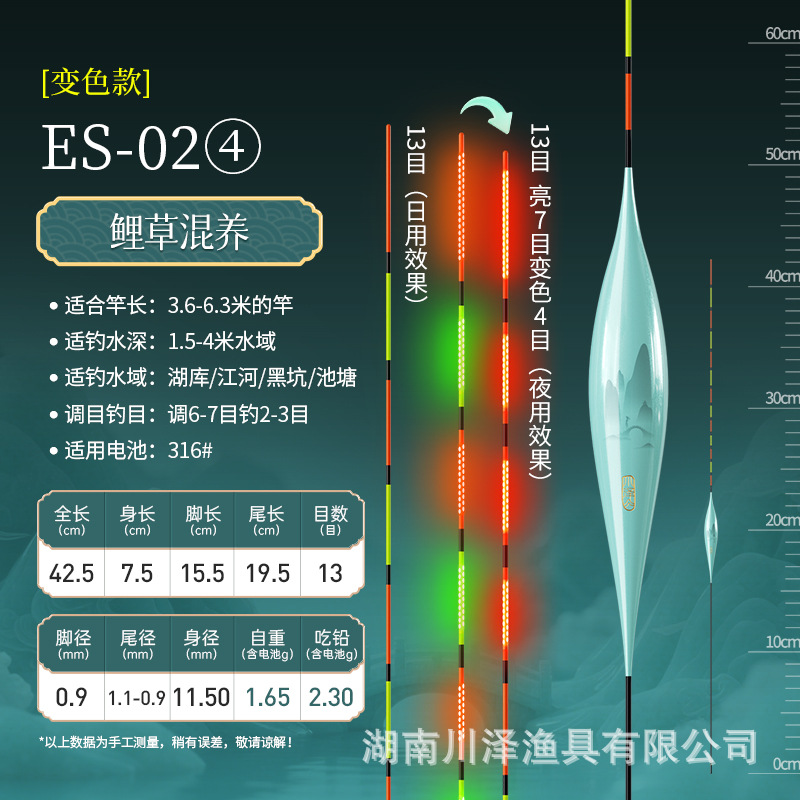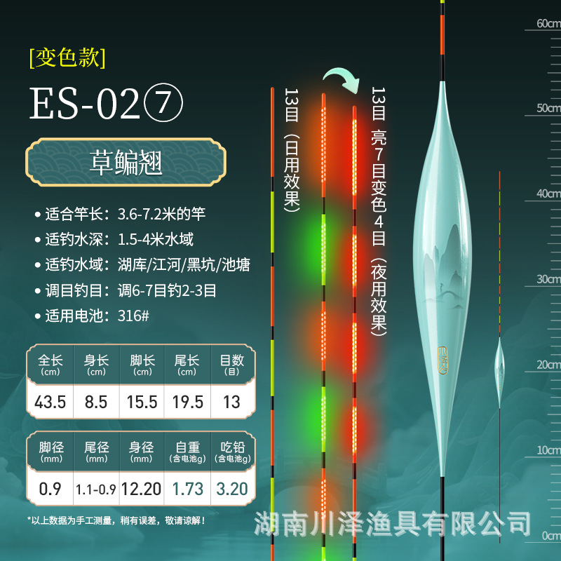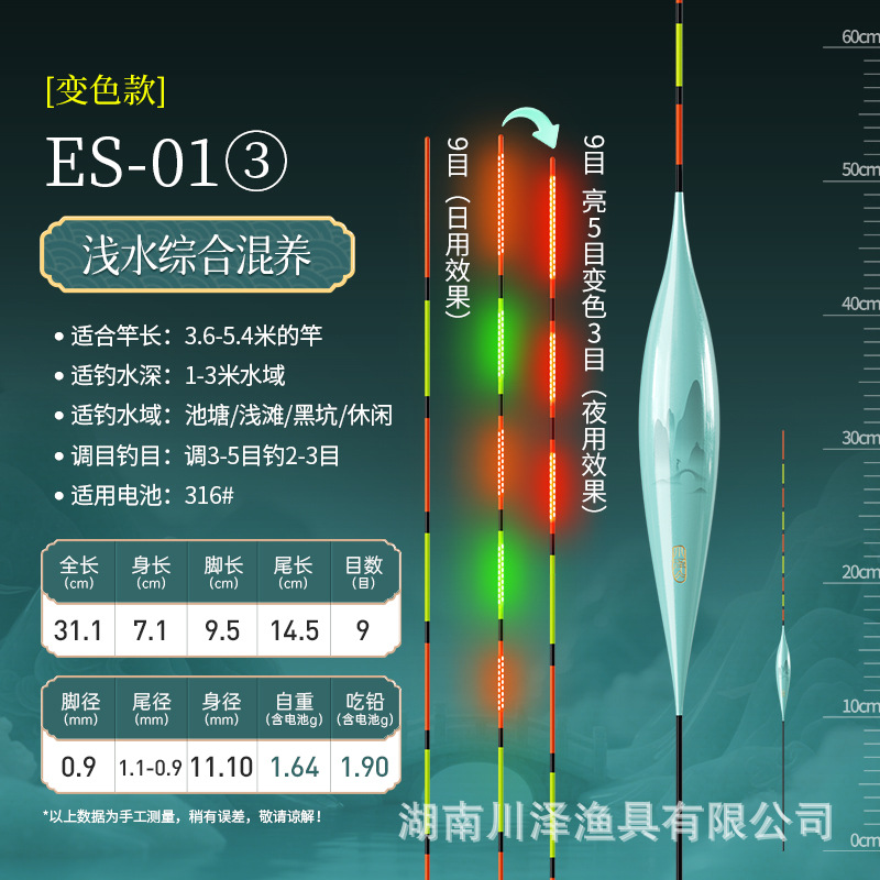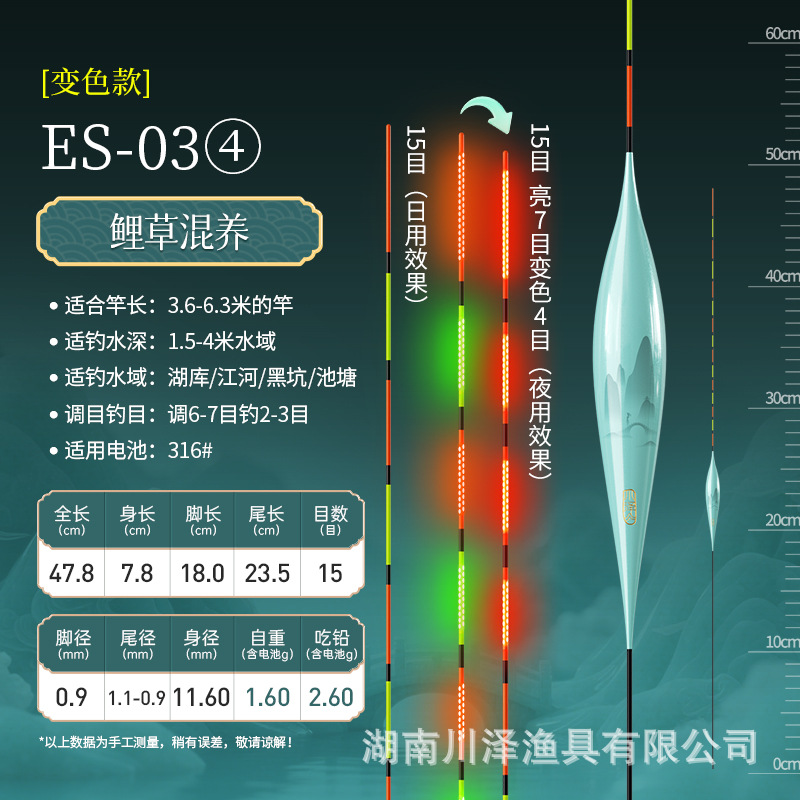 Chuanze OLED luminous float, highly sensitive and eye-catching float, biting hook, color changing carp, electronic fish float, soft light, day and night