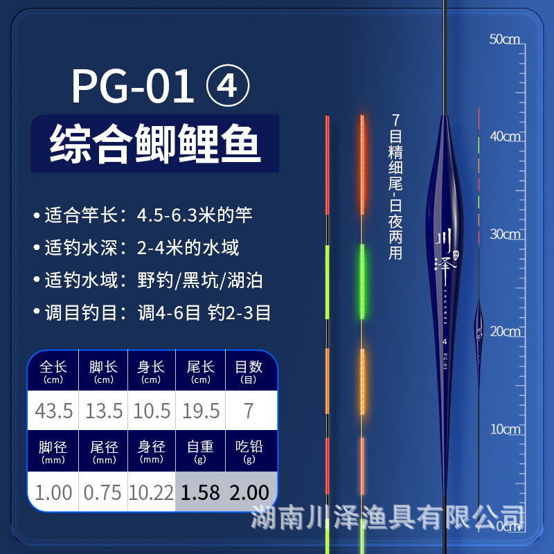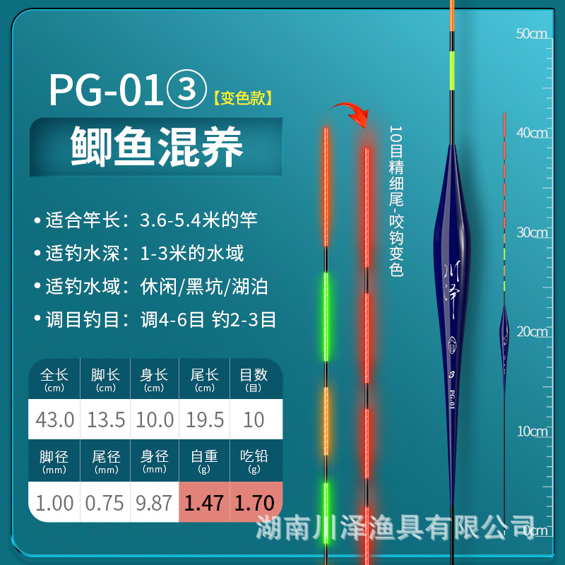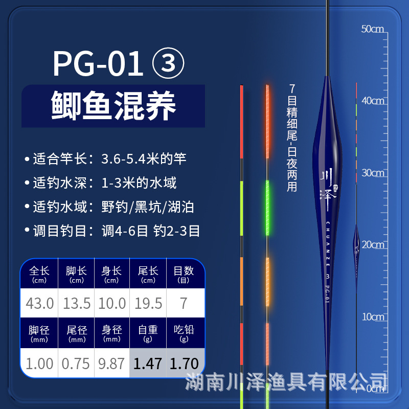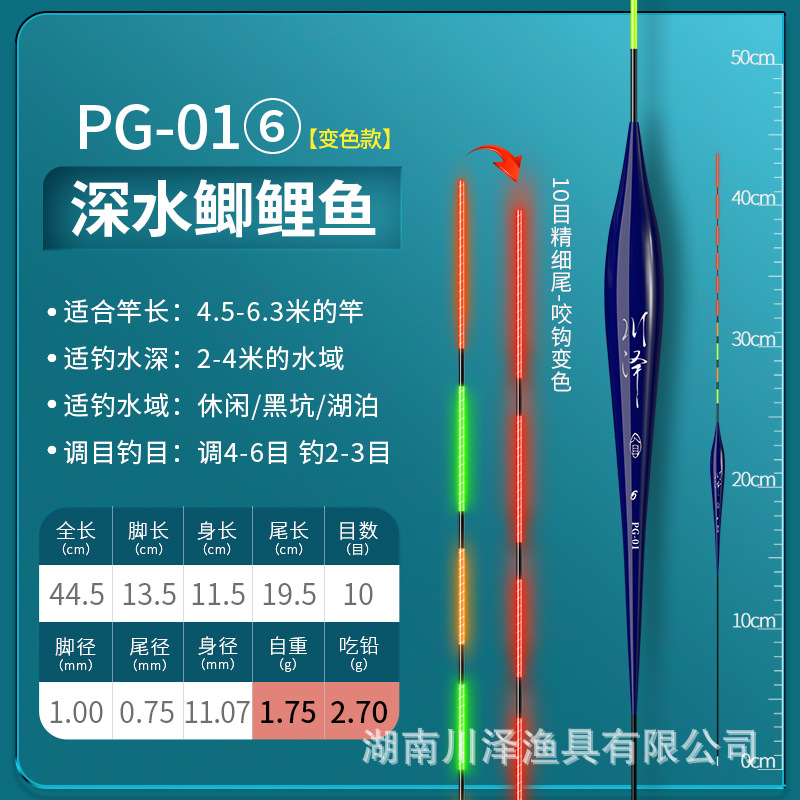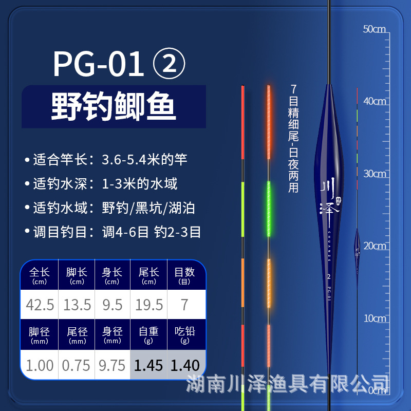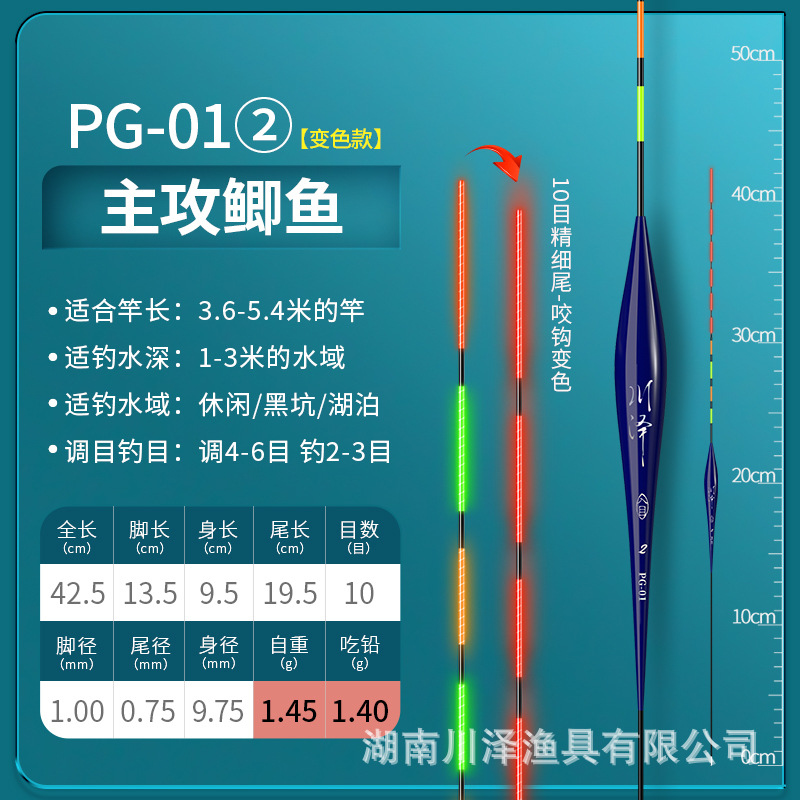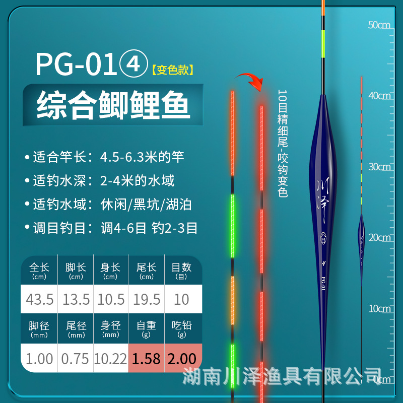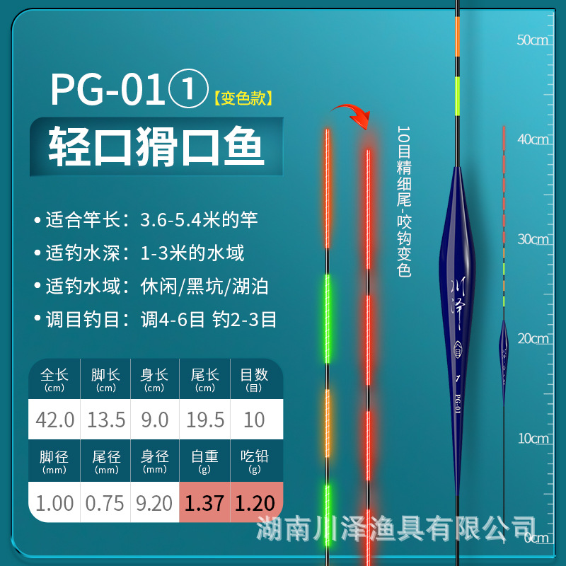 Chuanze PG high-sensitive float, luminous float, fine tail, soft and soft integrated luminous float, day and night dual-purpose color changing electronic float