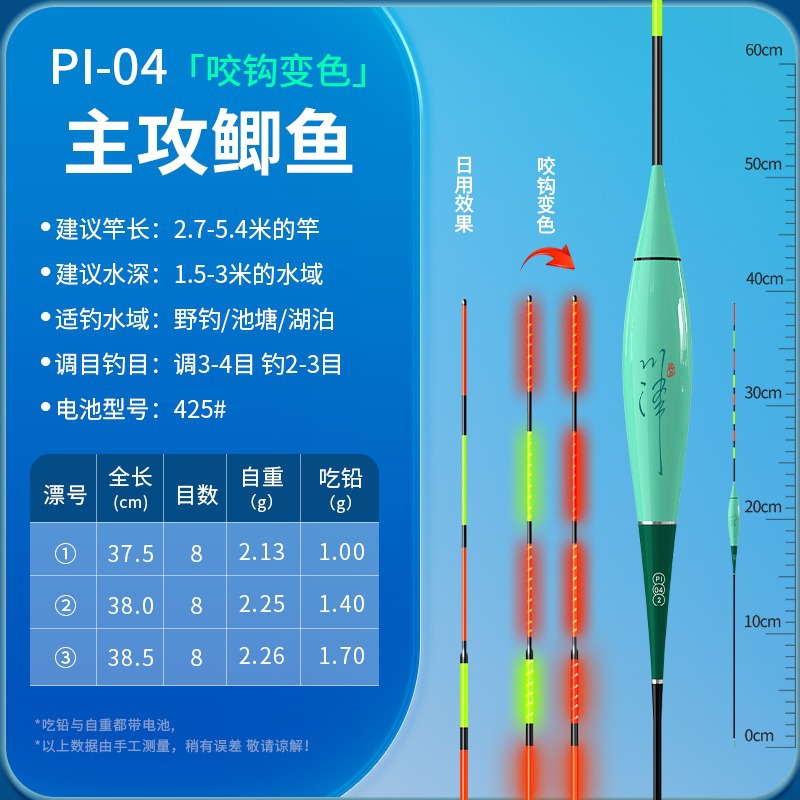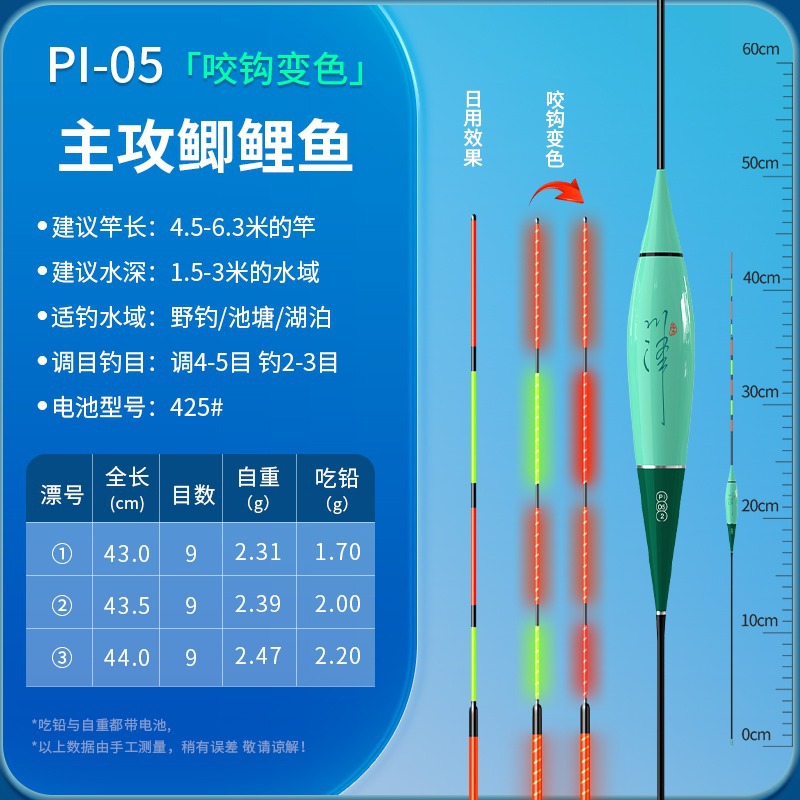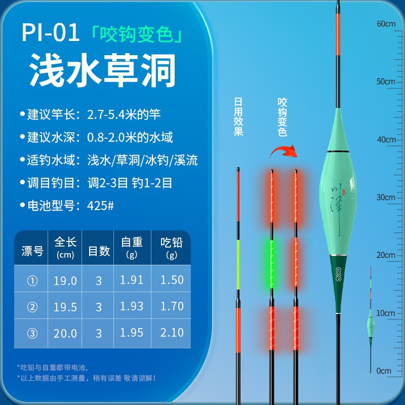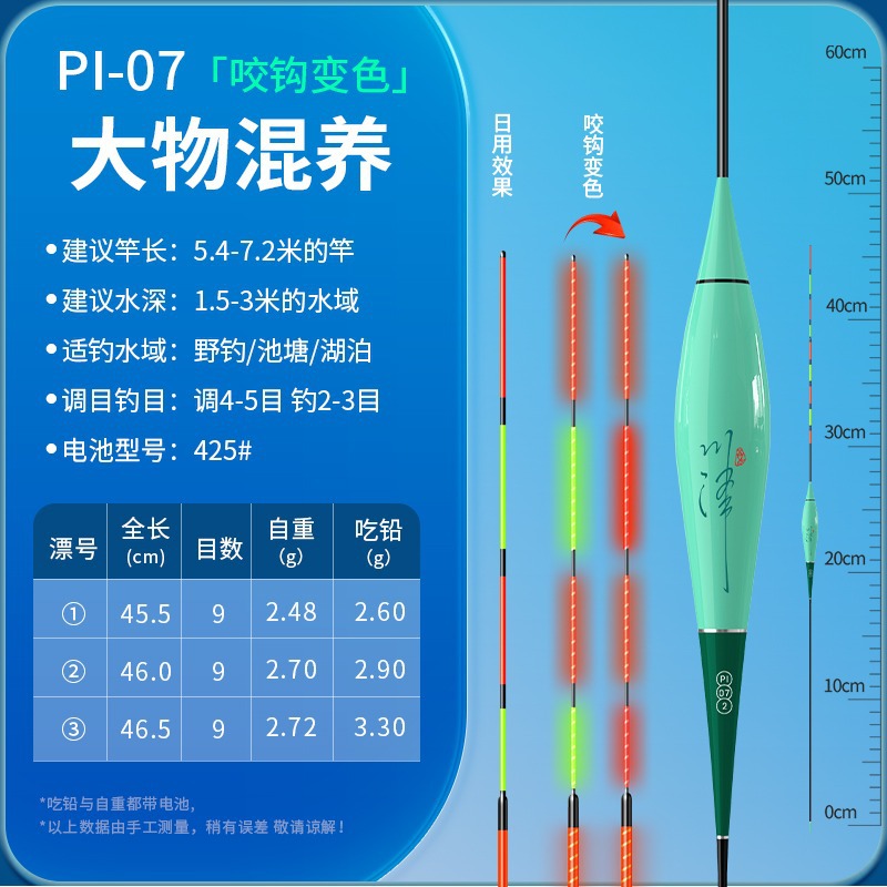 Chuanze PI hard soft tail luminous float biting hook color changing electronic float ultra-bright and highly sensitive day and night fishing float