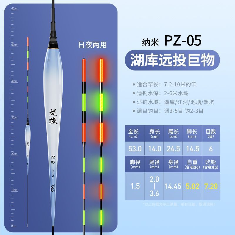 Chuanze PZ Silver carp and bighead carp large object luminous float, biting hook, color change day and night dual-purpose electronic float, highly sensitive, bold and eye-catching fish float
