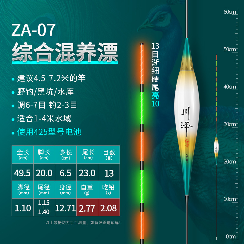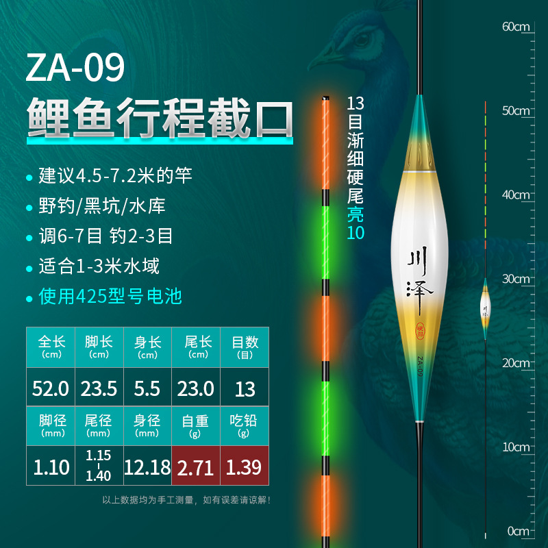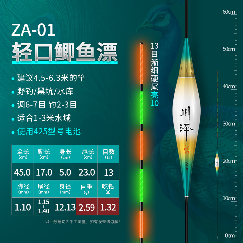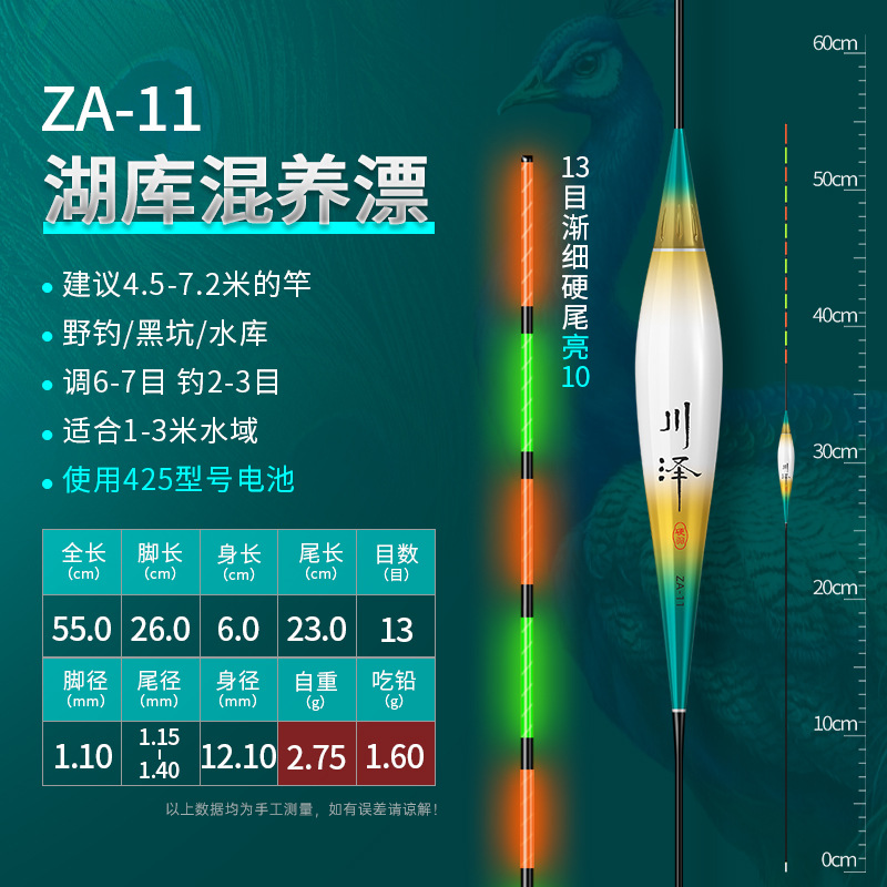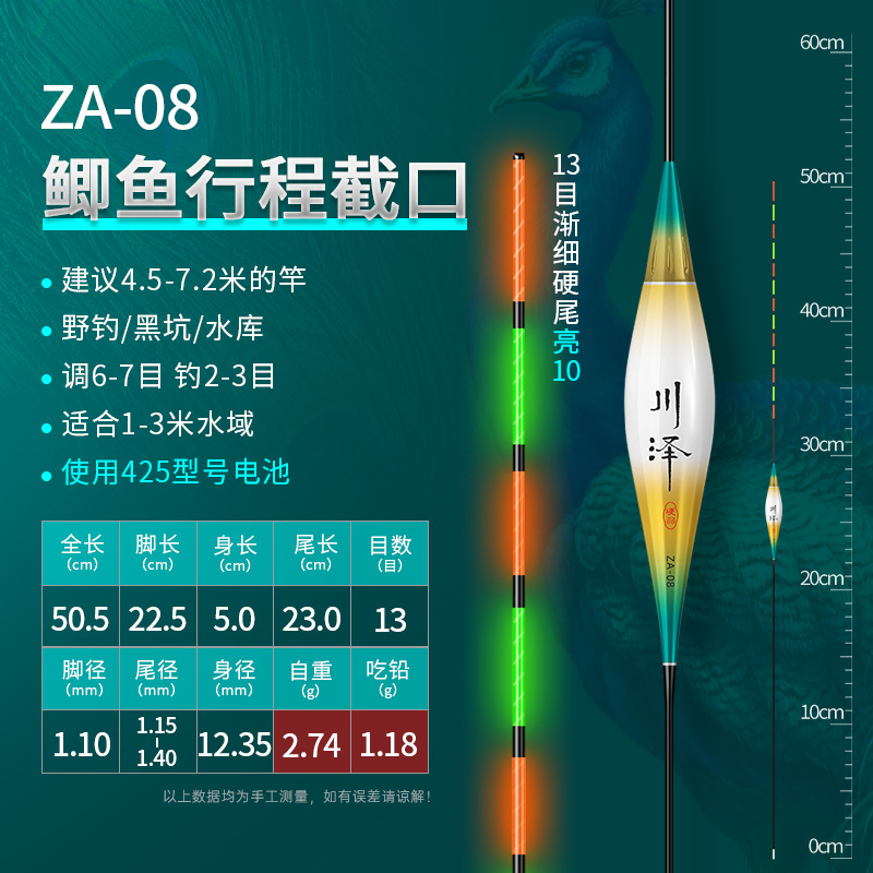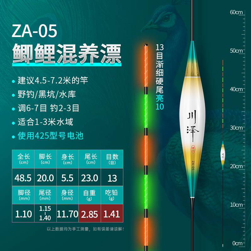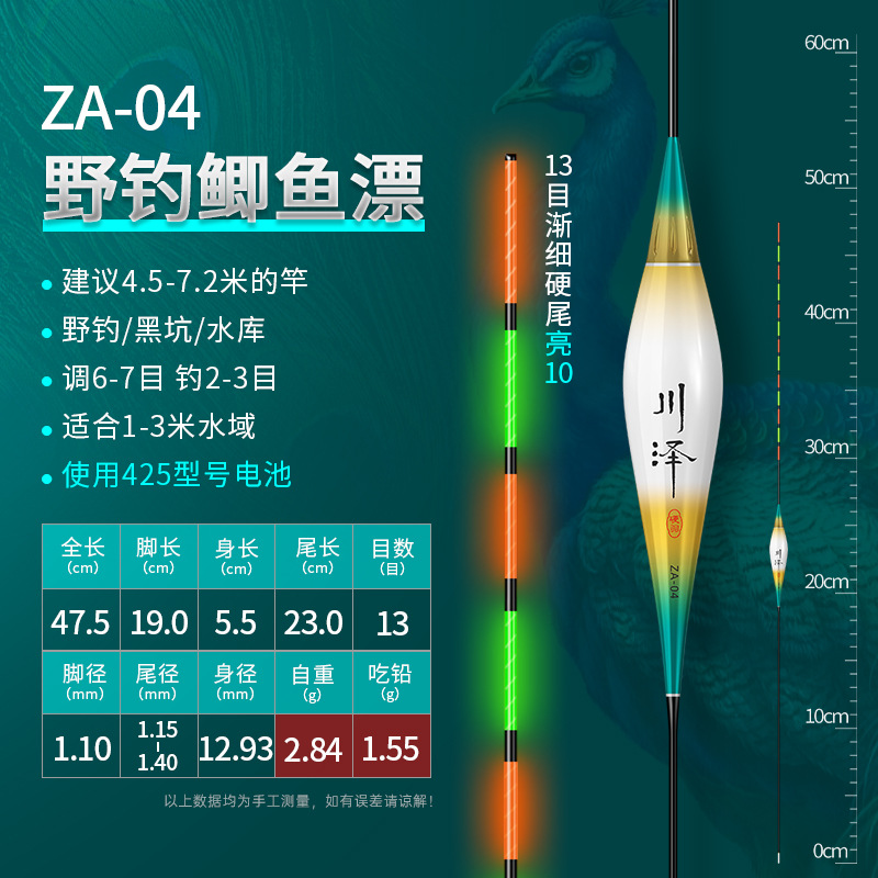 Chuanze ZA Peacock Feather Electronic Luminous Floater Day and Night Dual-Use Highly Sensitive Fish Floater, Light Mouth Carp Black Pit Competitive Floater