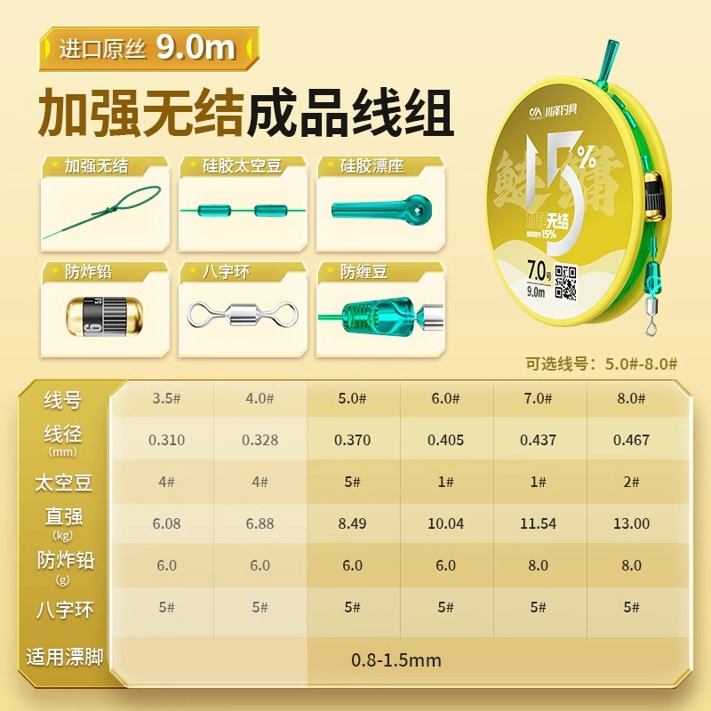 Chuanze authentic wire group, strengthened knotless hand tied, finished main line, large silver carp and bighead carp, super tensile force, enhanced fishing line