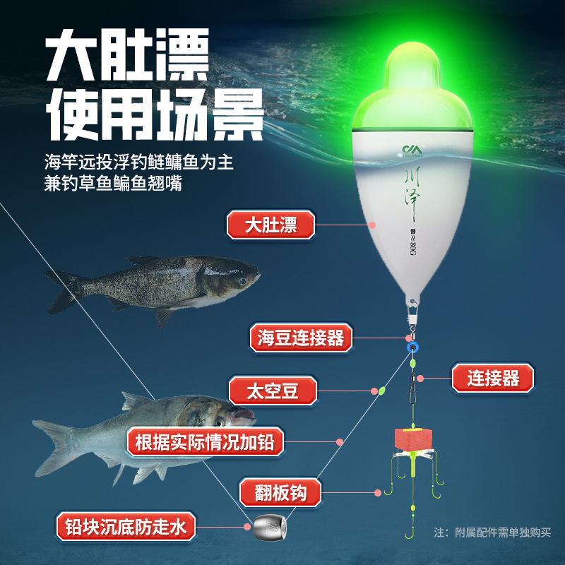Chuanze big belly floating sea pole, long-distance throwing fish floating sea fishing floating pole, apo floating silver carp and bighead carp floating night and night dual-purpose skating floating