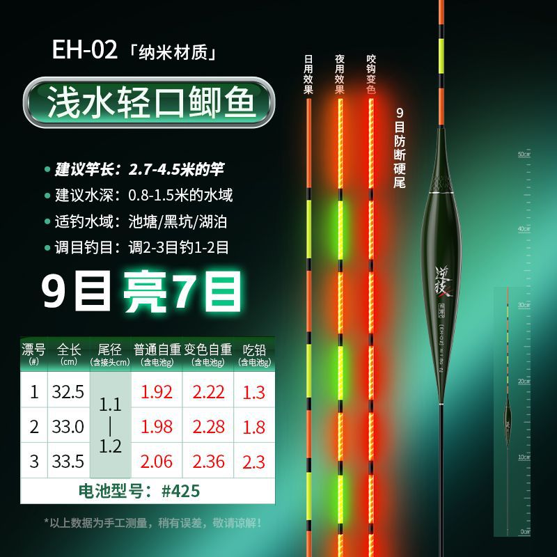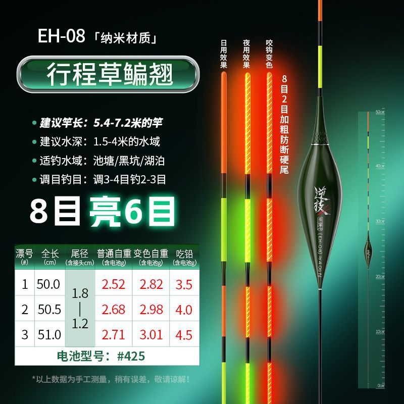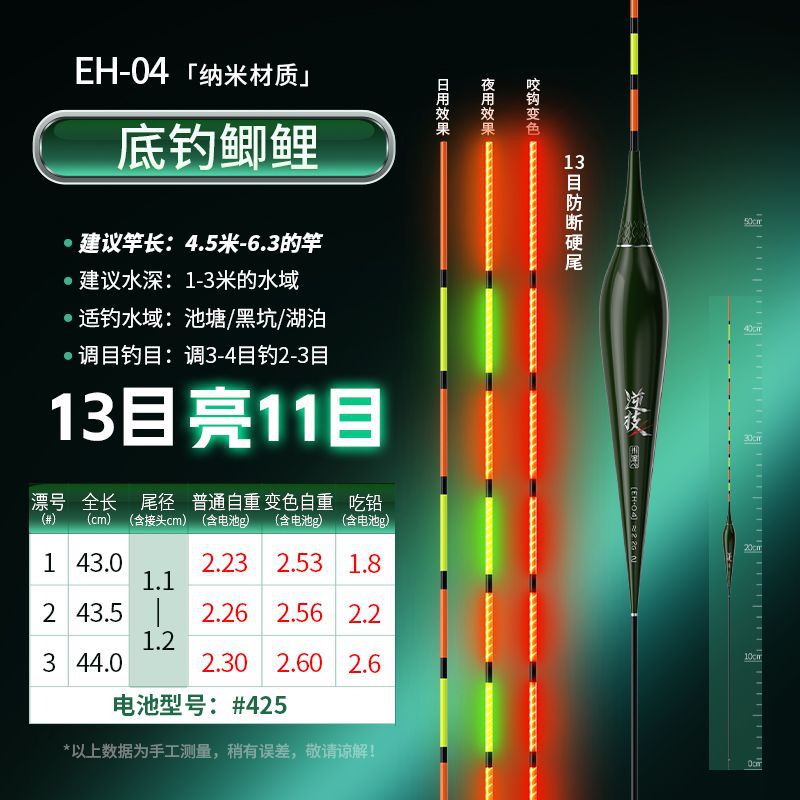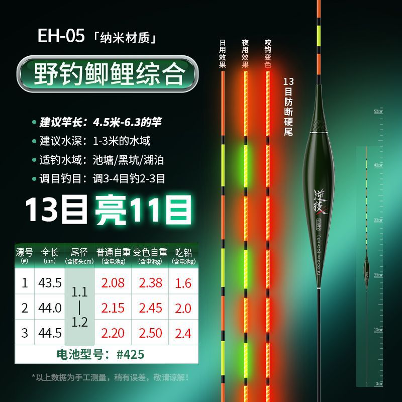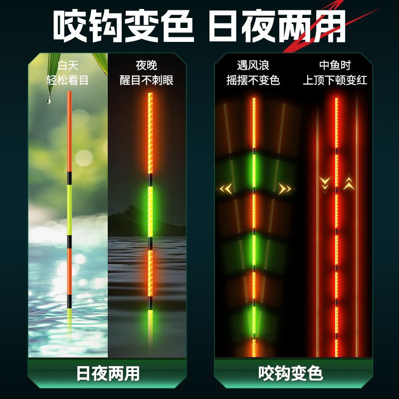 Chuanze biting hook color changing integrated hard-tail luminous electronic float day and night dual-purpose wild fishing, highly sensitive and eye-catching carp float