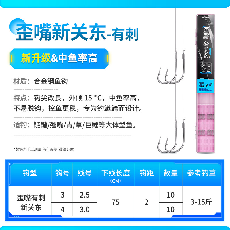 Chuanze crooked mouth New Guandong thorn fish hook, authentic product, tied line, double hook, finished product, floating fishing group, silver and bighead carp line set