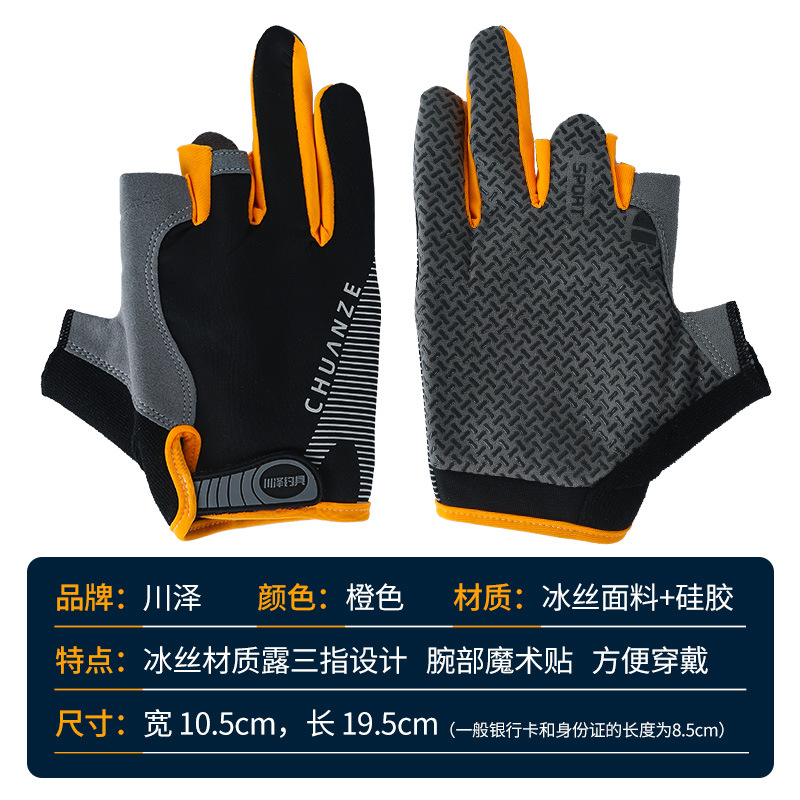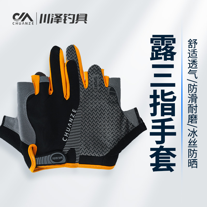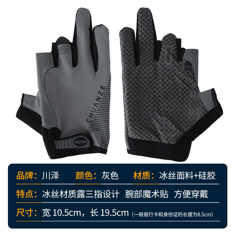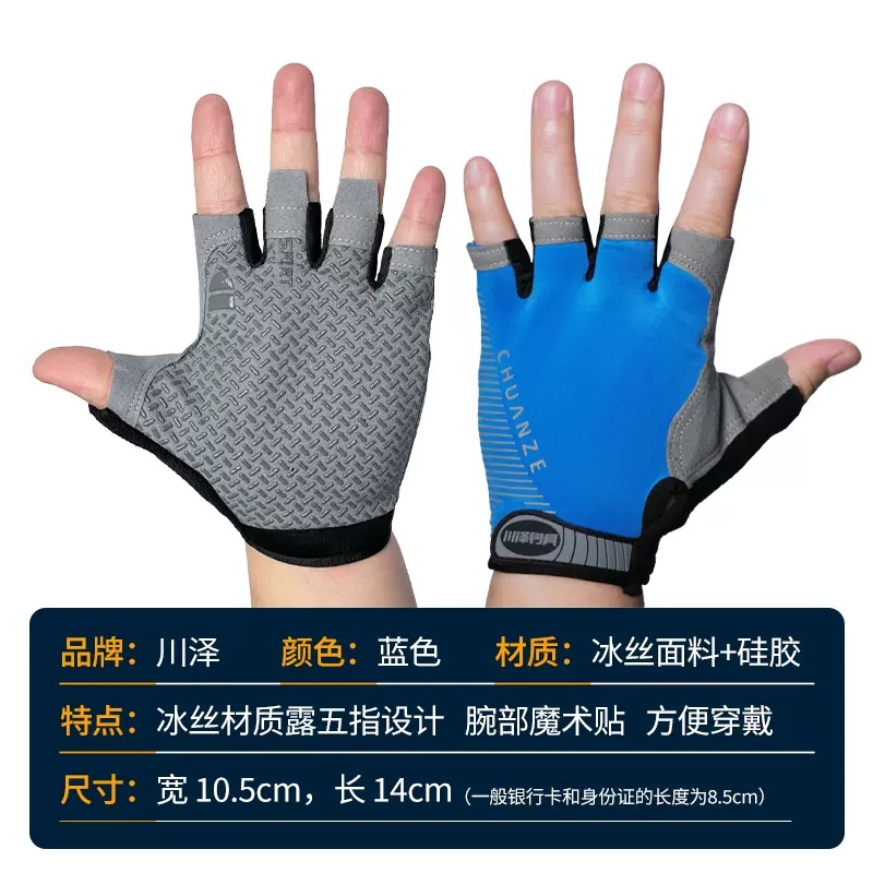 Chuanze fishing gloves, ice silk Luya gloves, sun protection, anti-slip, anti-stinging, waterproof port fishing half-finger gloves