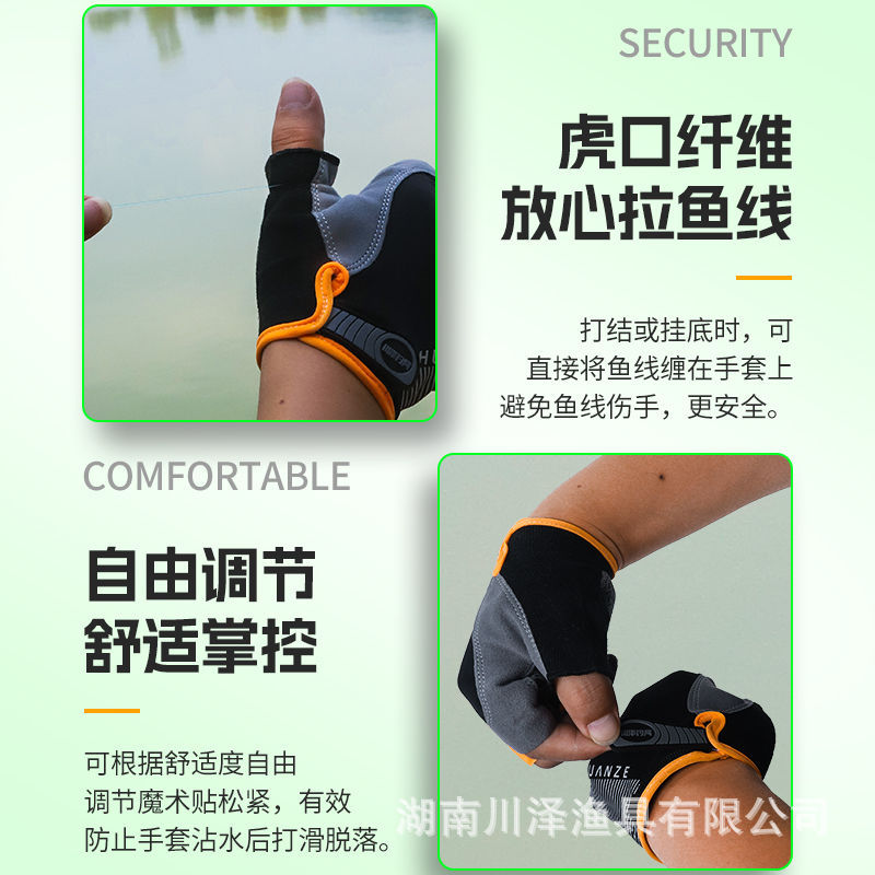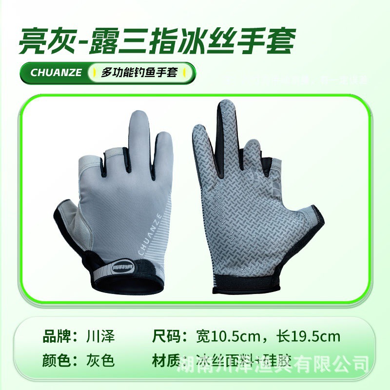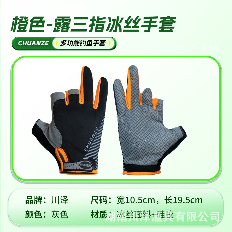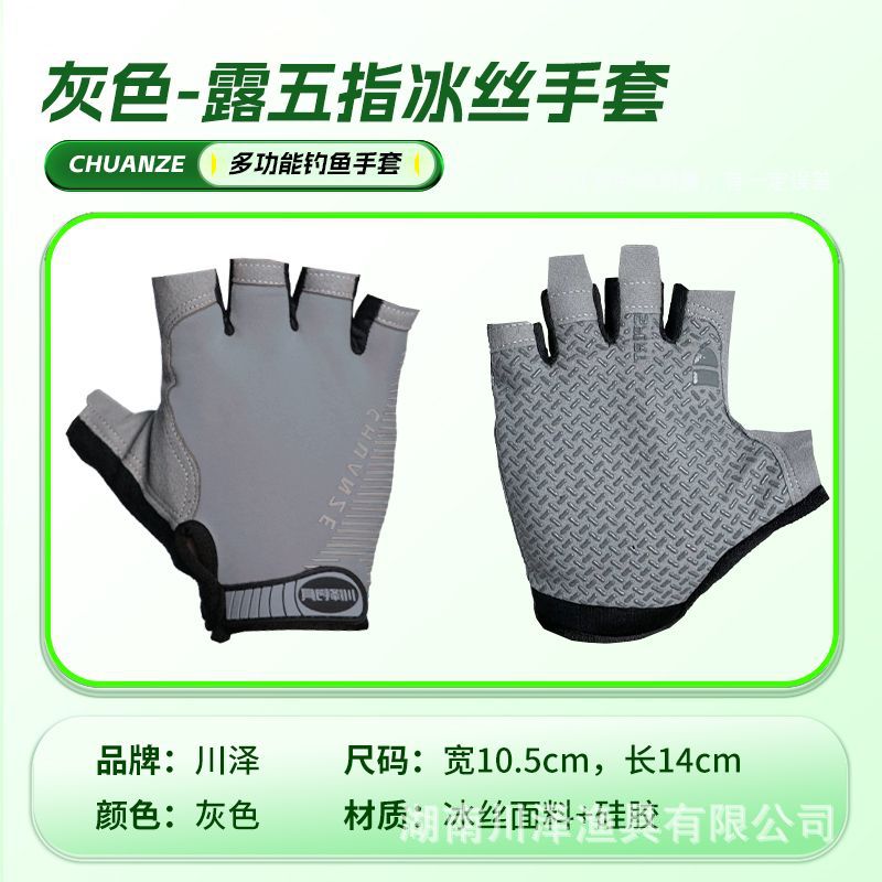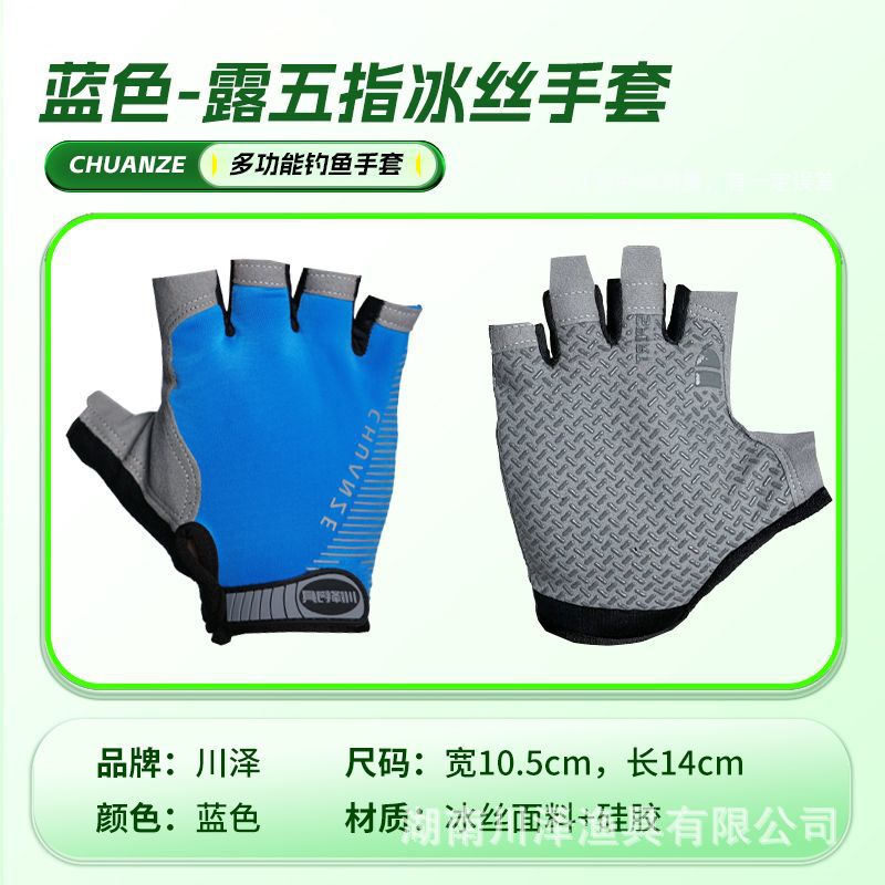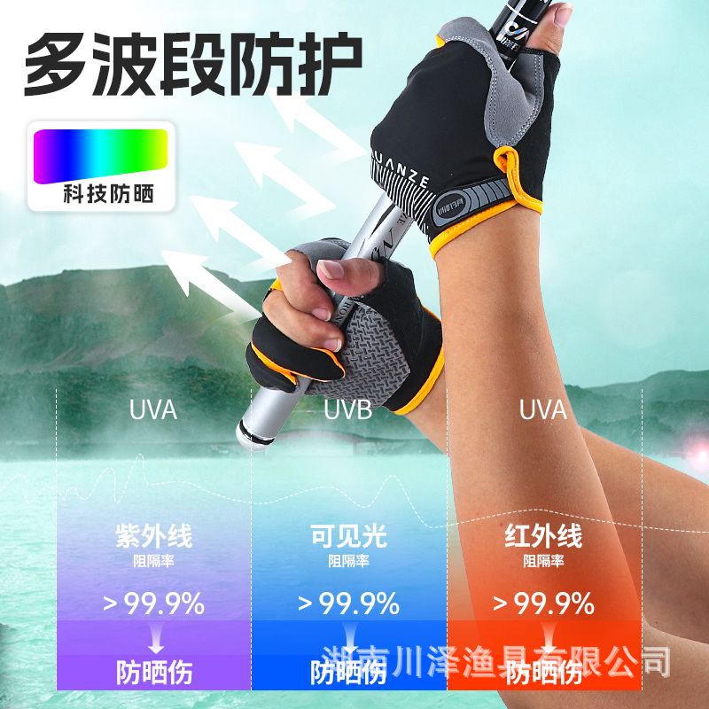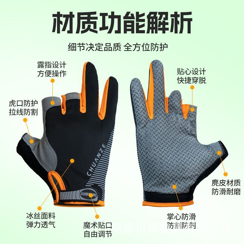 Chuanze fishing gloves, sunscreen, anti-slip ice silk, Luya gloves, flying knock, anti-puncture, waterproof port, sea fishing half-finger gloves