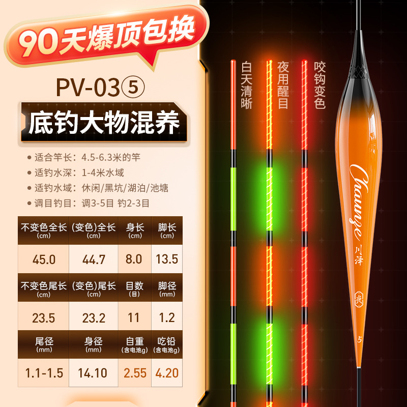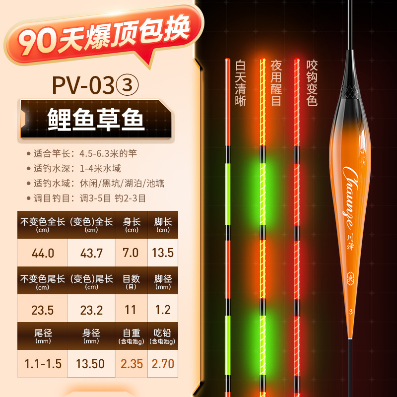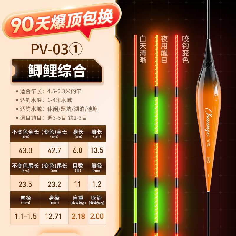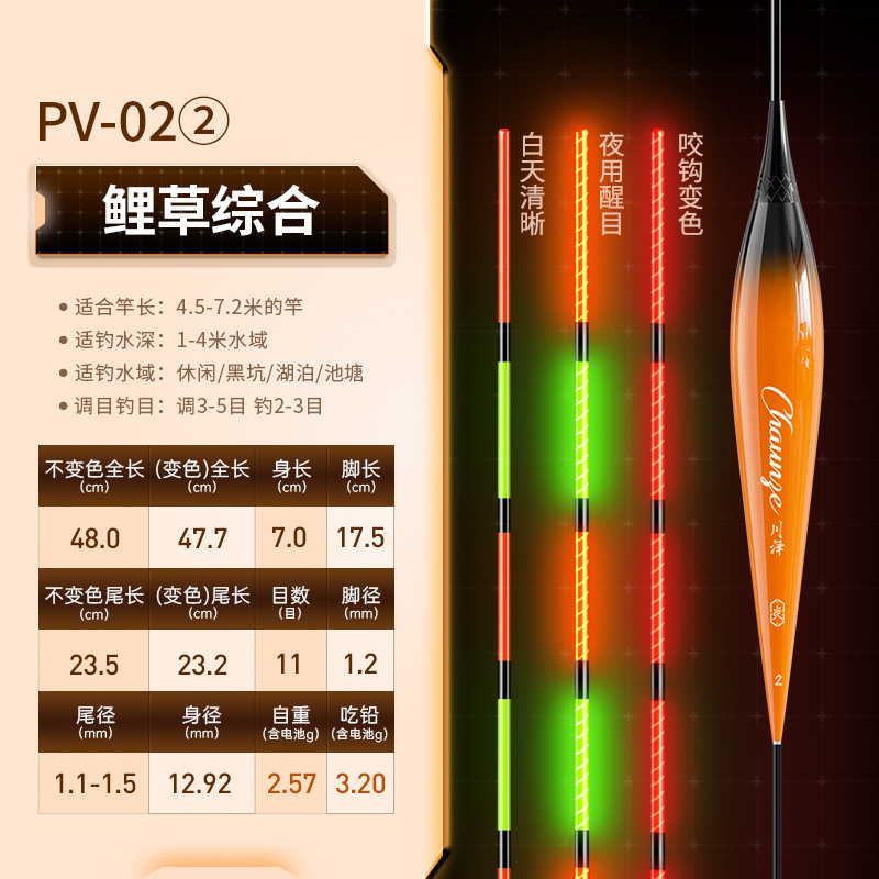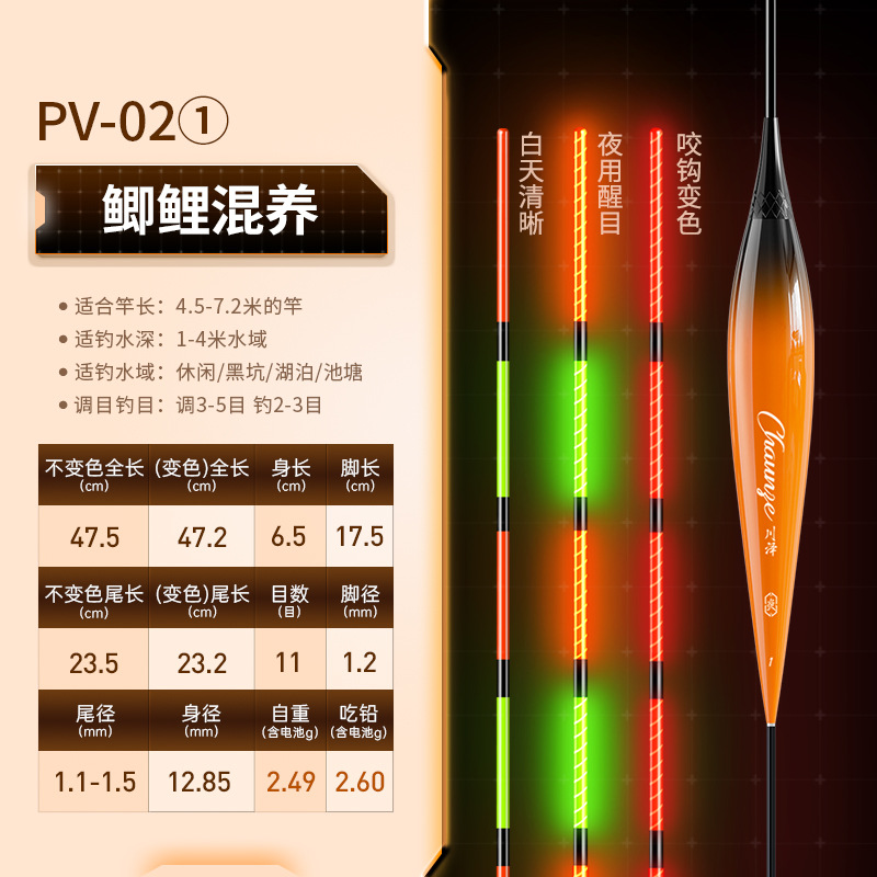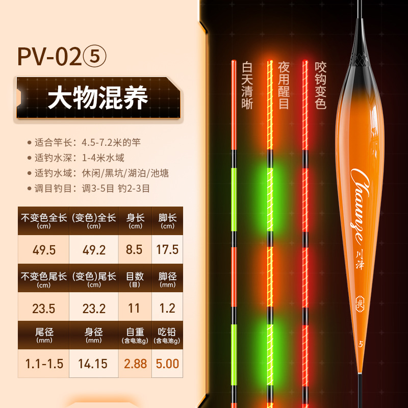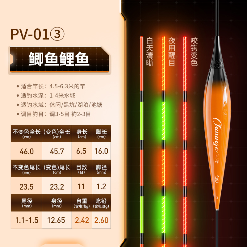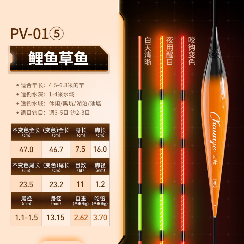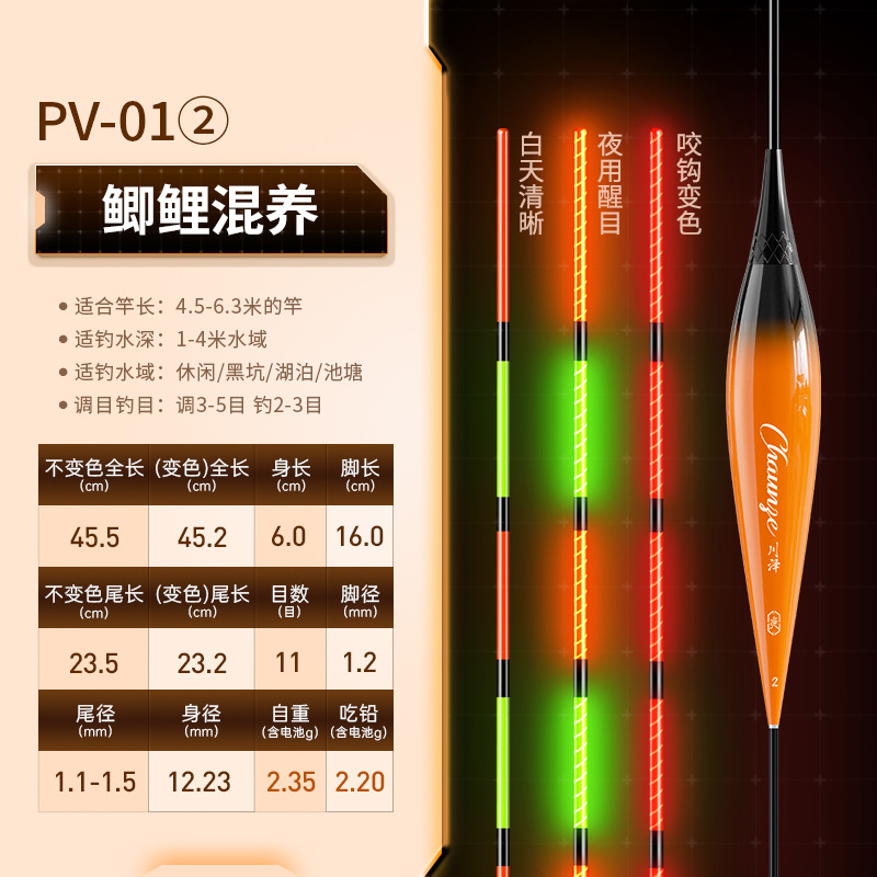 Chuanze float PV integrated interlocking luminous float bite hook color fish float high-sensitive electronic float day and night dual-use float