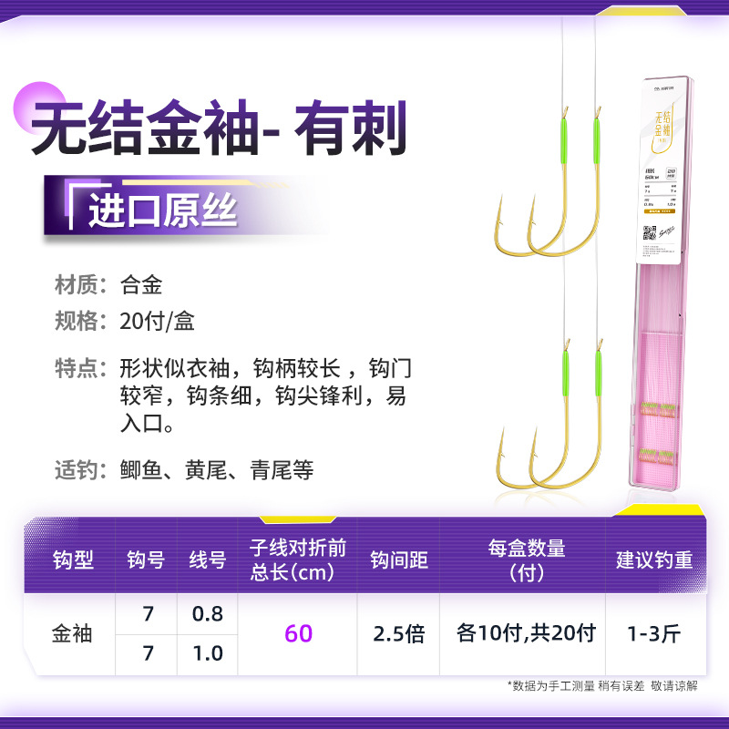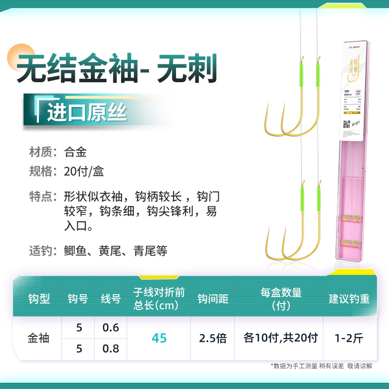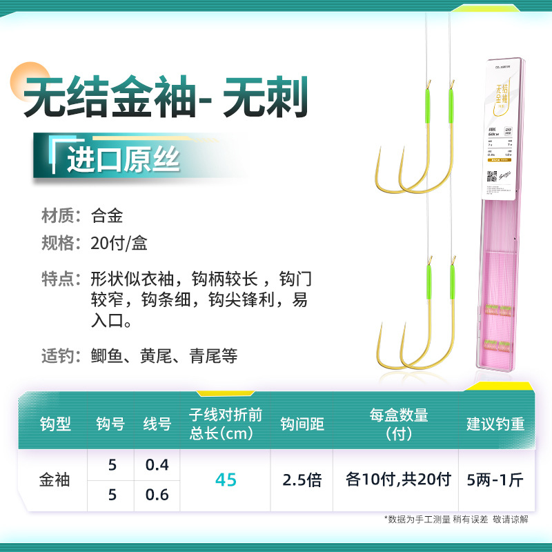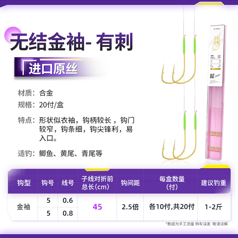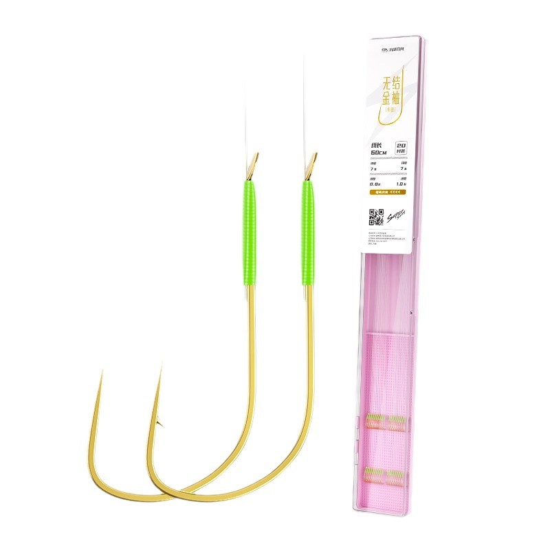 Chuanze knotless gold sleeve with thorn thread double hook finished product tie anti-entanglement fish hook short thread sleeve hook crucian hook