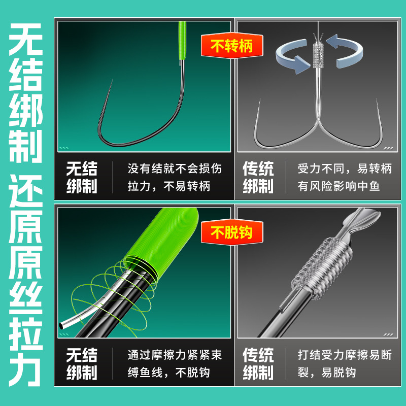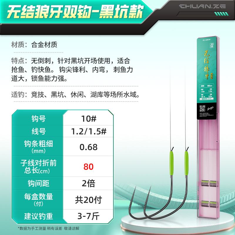 Chuanze knotless wolf tooth fish hook line double hook finished product non-destructive tie suit black pit competitive barbed hook