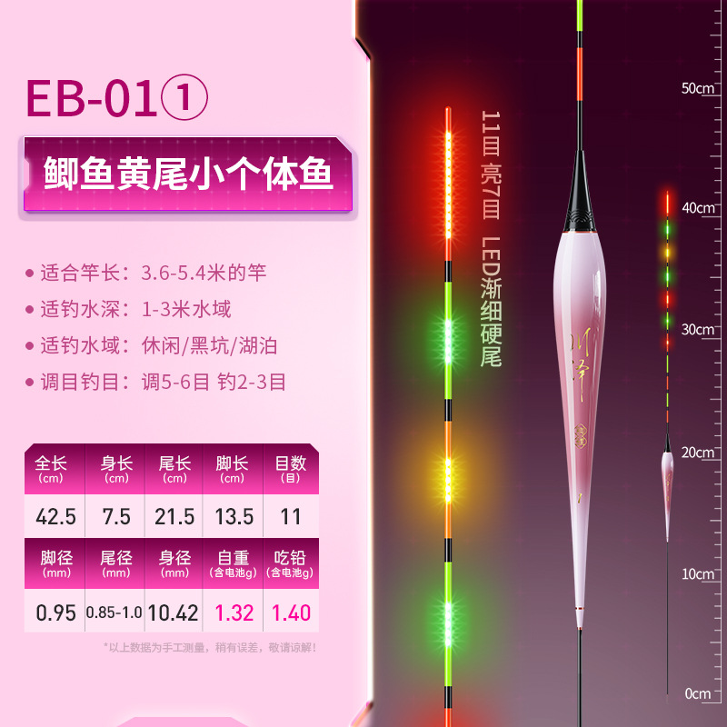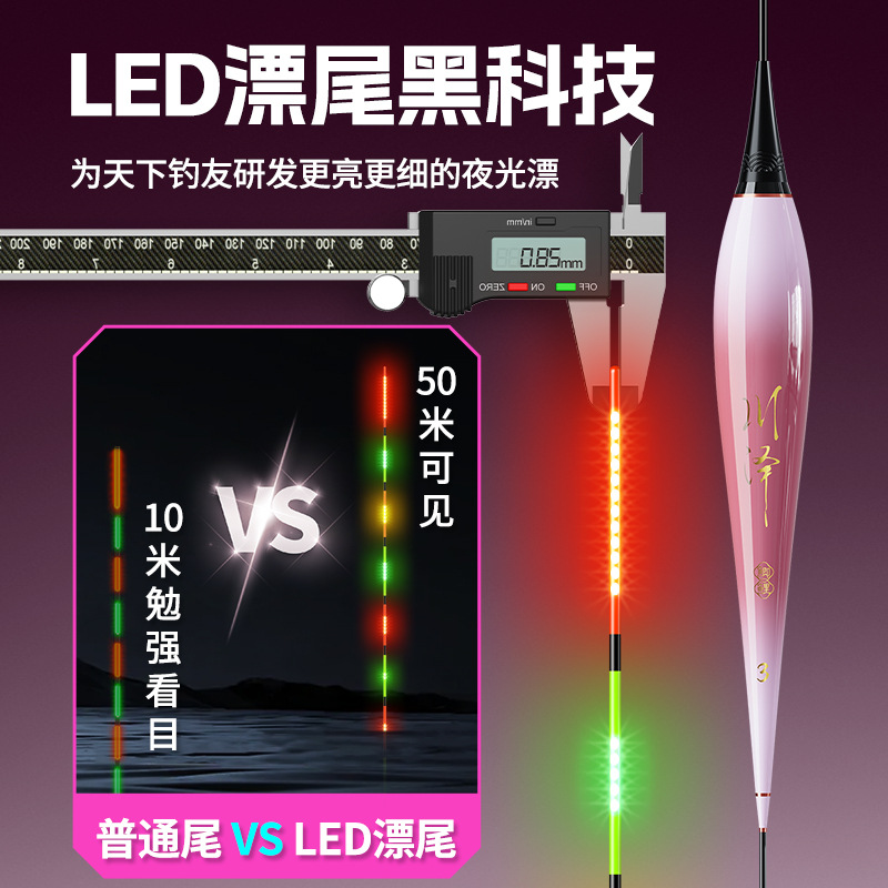 Chuanze lamp bead hard-tailed crucian carp luminous float is highly sensitive and eye-catching, biting hook and color changing electronic fish float day and night dual-purpose float