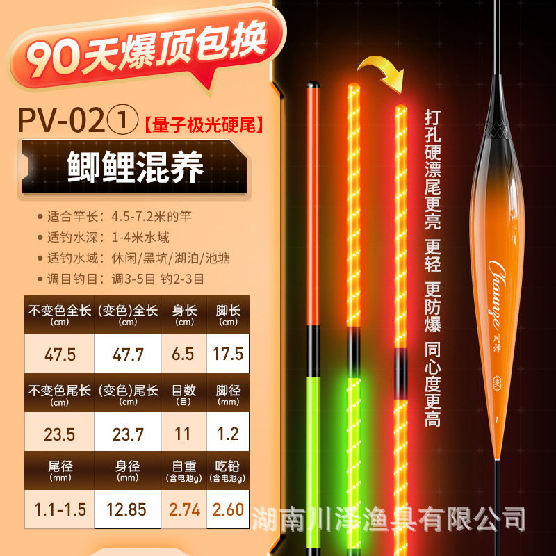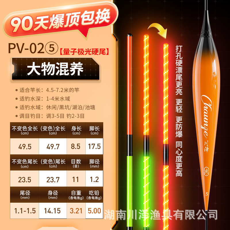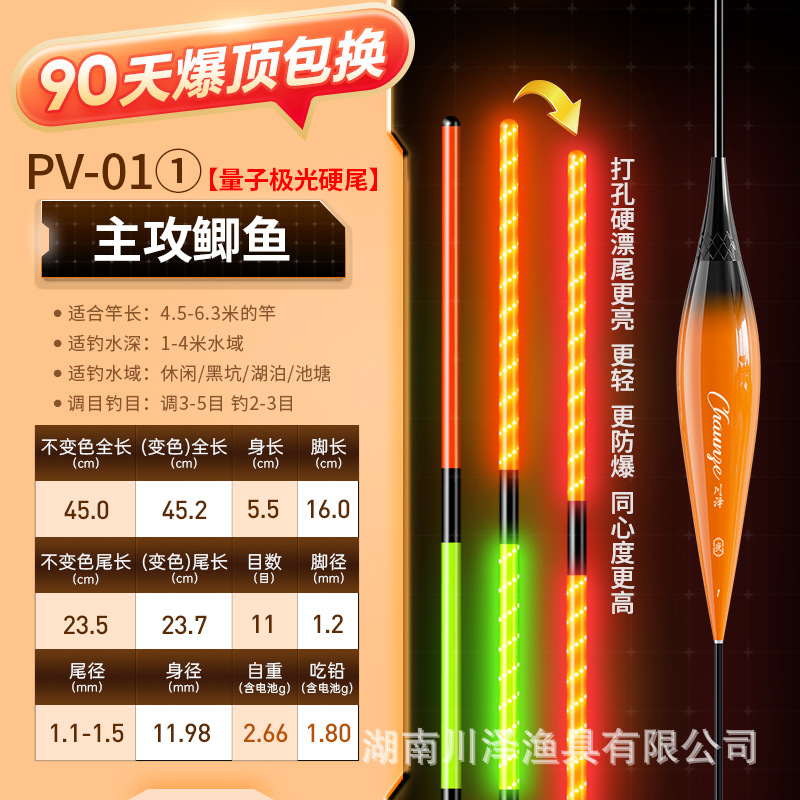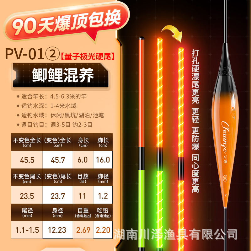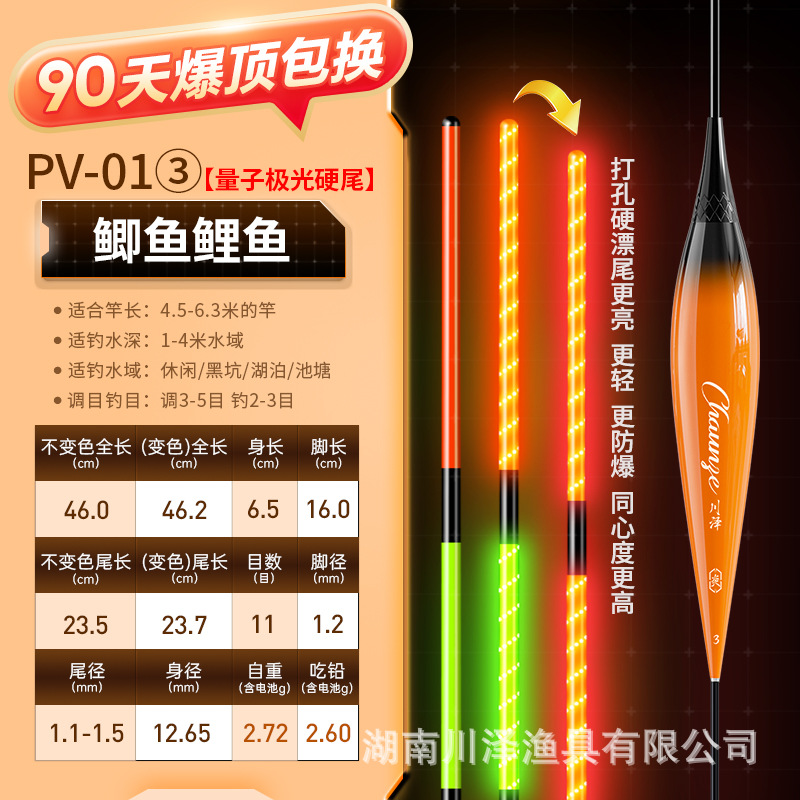 Chuanze luminous float integrated hard-tail luminous float bite hook color change day and night dual-purpose fish float high-sensitive wild fishing electronic float