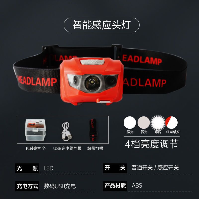 Chuanze night fishing fishing headlight Strong light charging super bright sensing headlight Special for fishing lightweight portable lasting battery life
