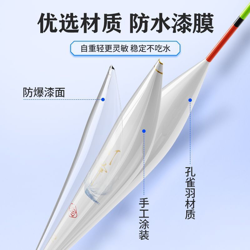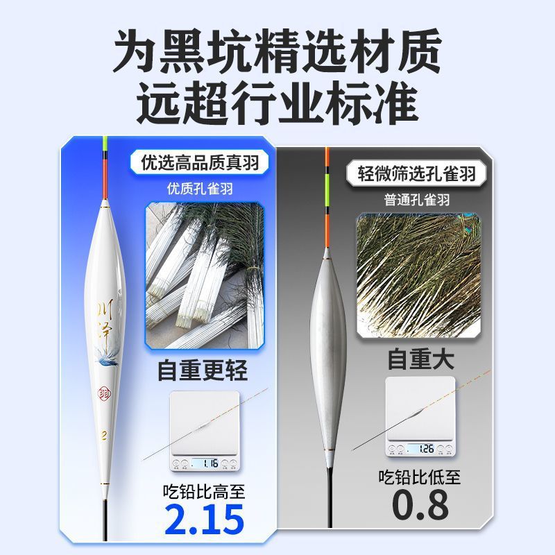 Chuanze peacock feather float, highly sensitive and eye-catching, light mouth carp float, authentic wild fishing, black pit competitive feather fish float
