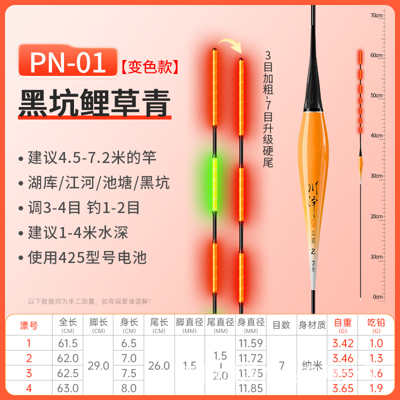 Chuanze rogue running lead, luminous float, biting hook, color changing electronic float, day and night, black pit, giant grass, large objects float