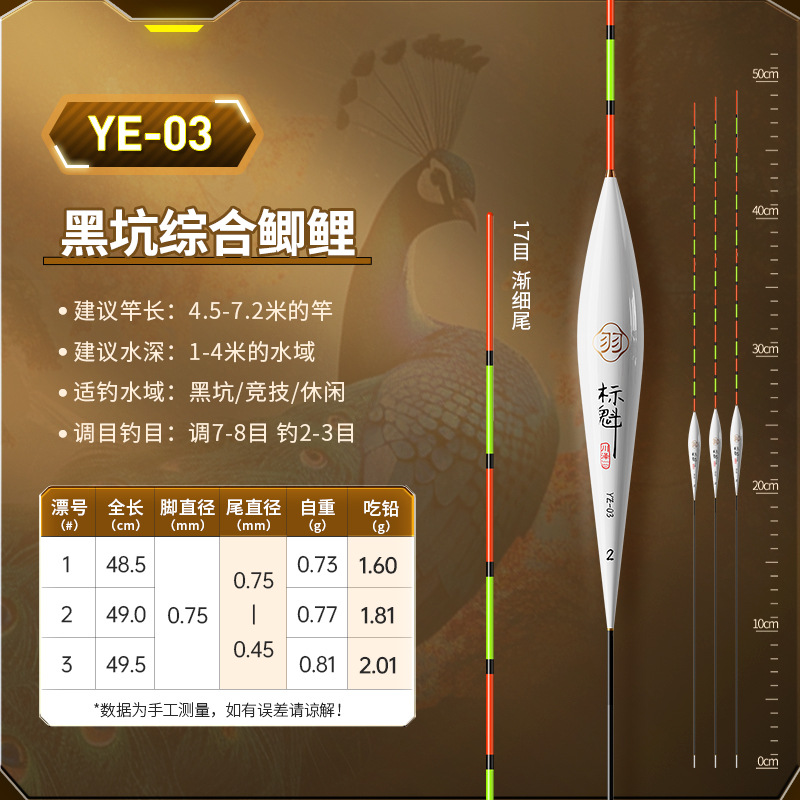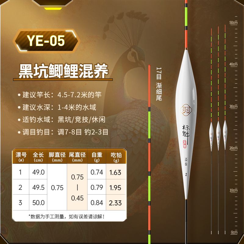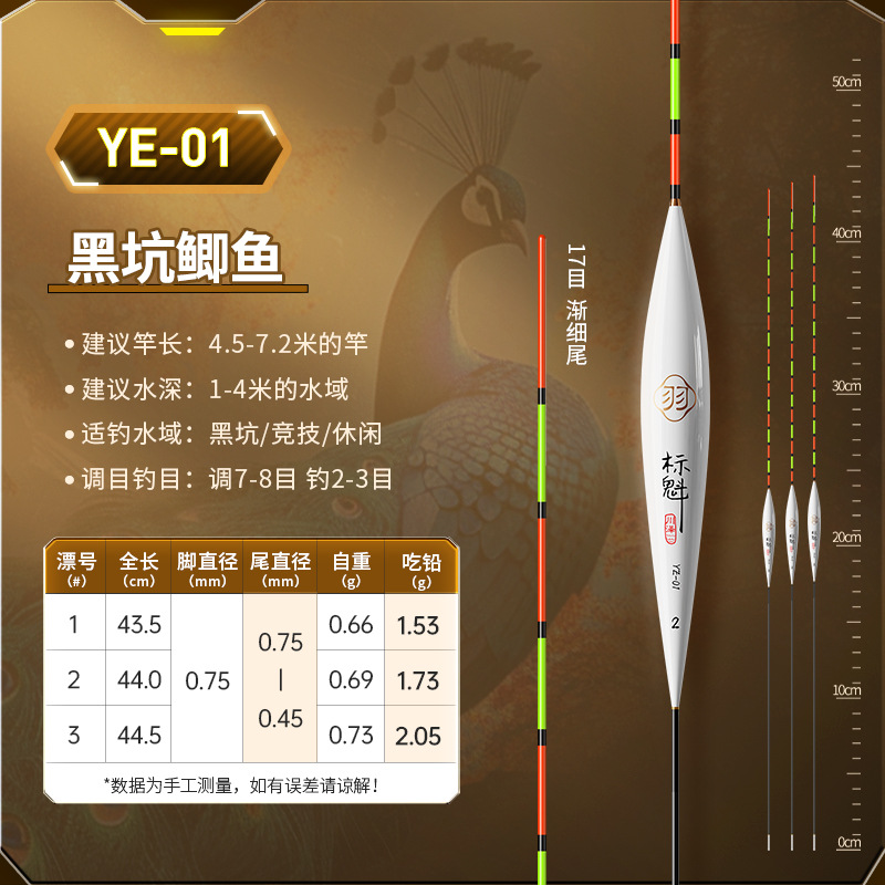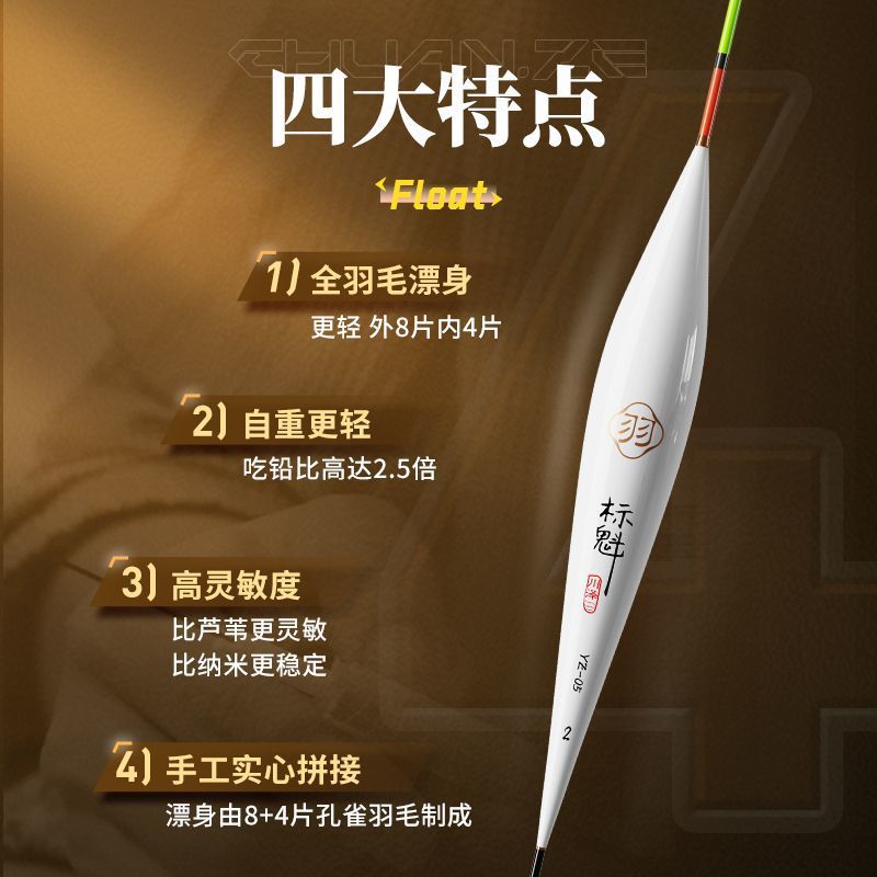 Chuanze shelled peacock feather competitive fish float is highly sensitive and eye-catching, black pit bottom fishing, wild fishing, light mouth, cunning mouth float