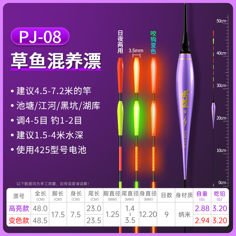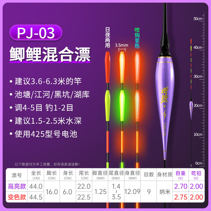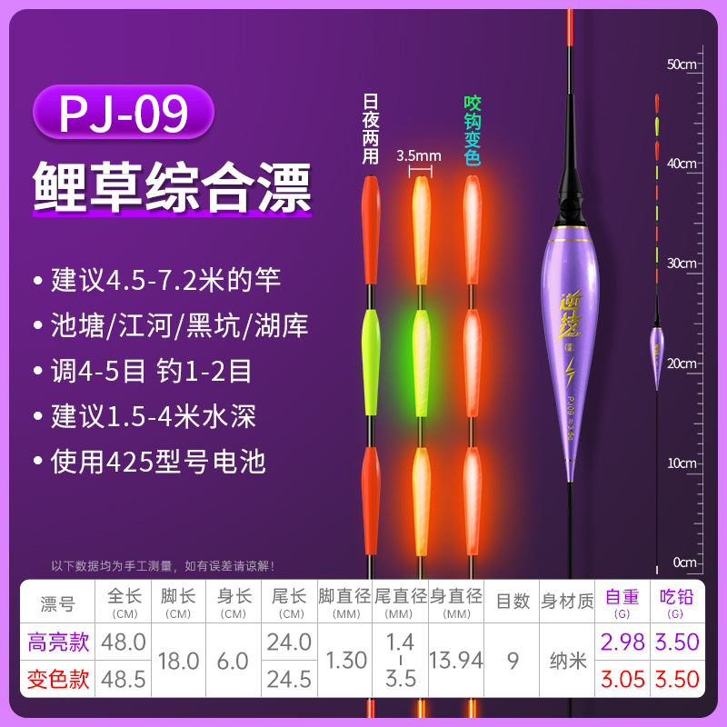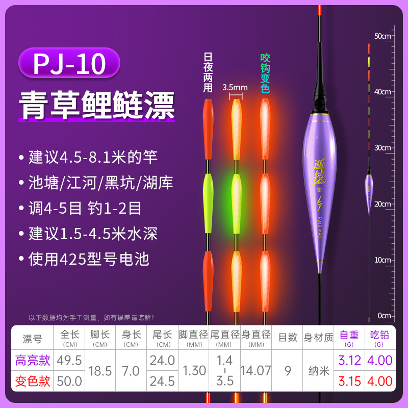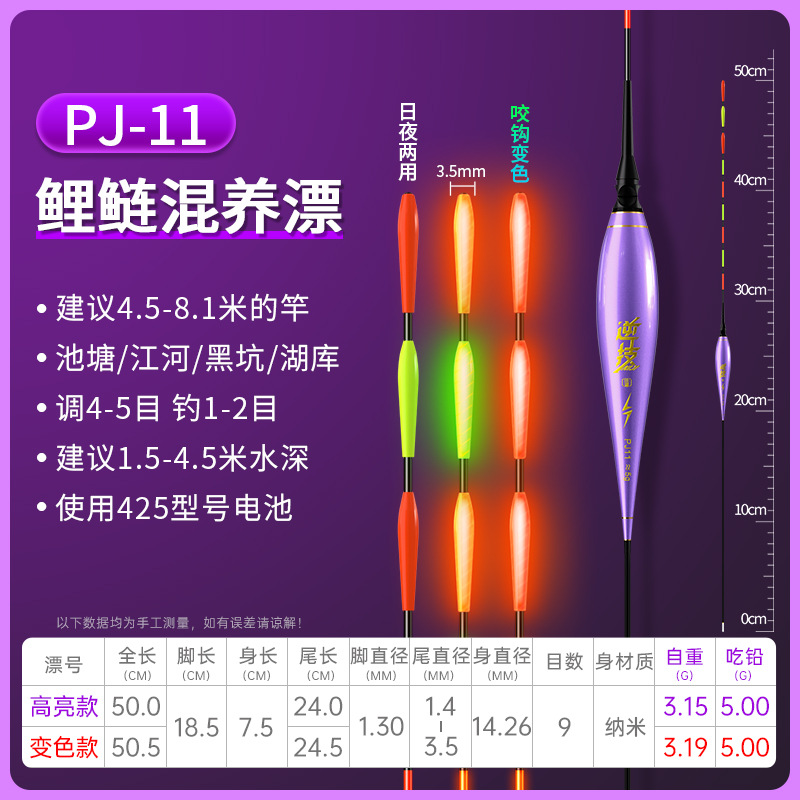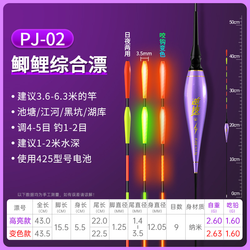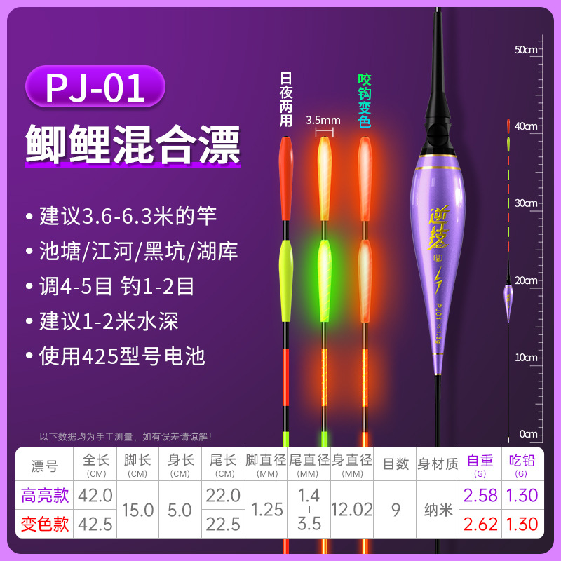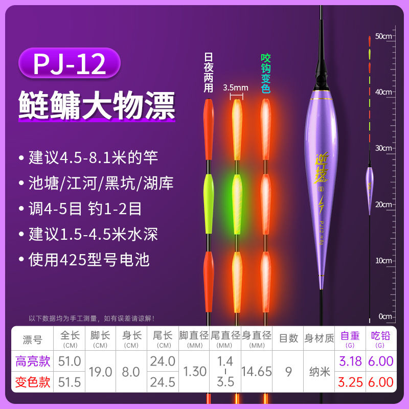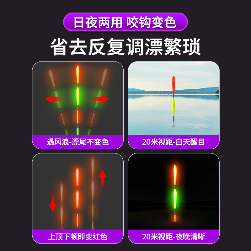 Chuanze thick, ultra-eye-catching luminous float, biting hook, discoloring, highly sensitive day and night dual-purpose luminous float, crucian float, authentic product