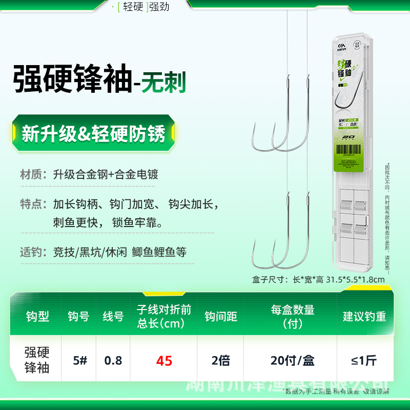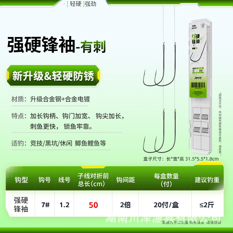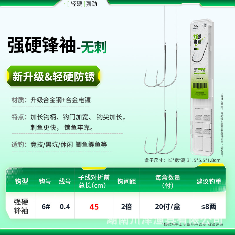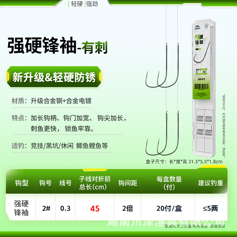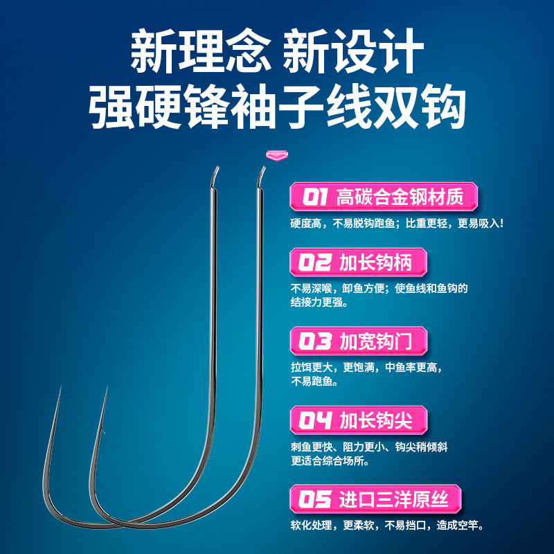 Chuanze tough sharp sleeve fish hook, tied sub-thread double hook finished product black pit anti-entanglement carp hook sleeve special for competition