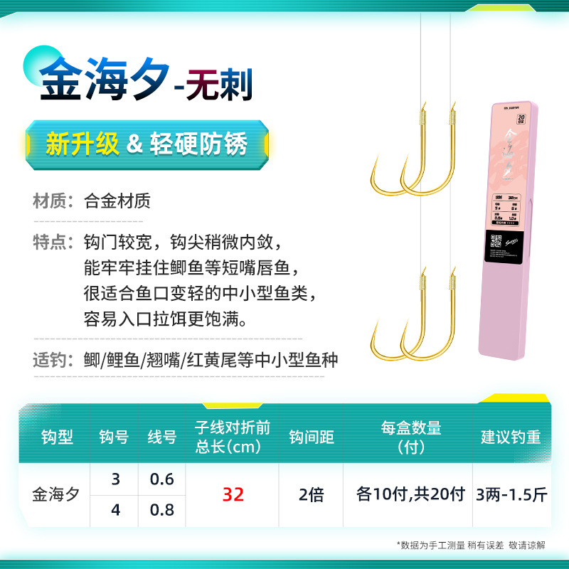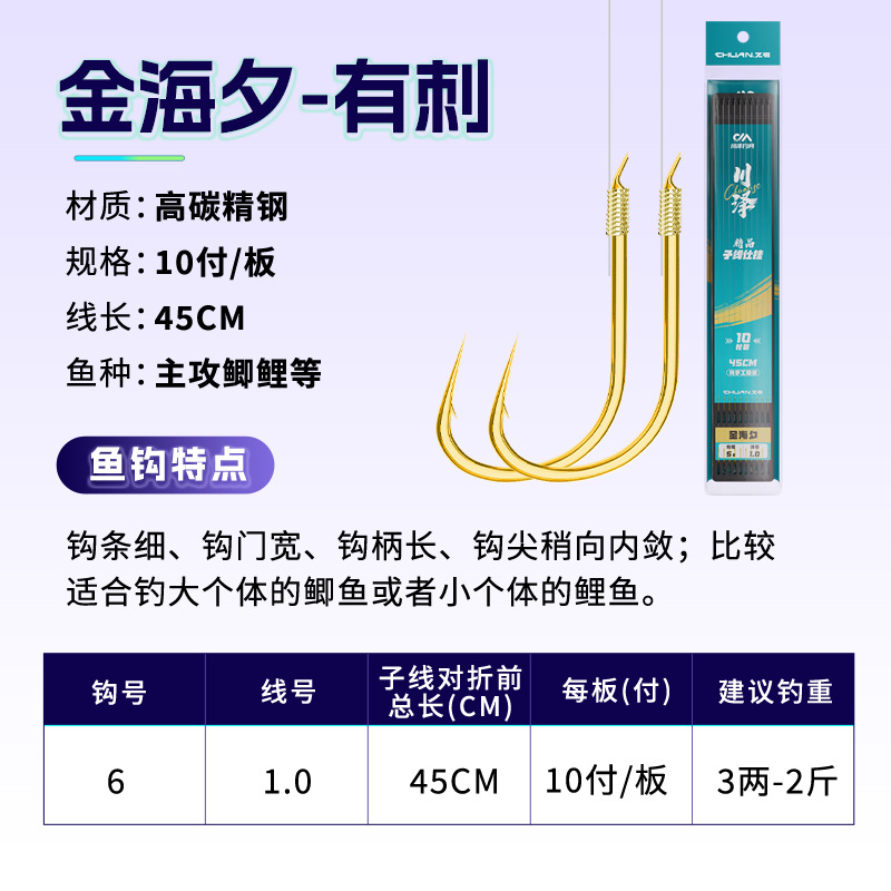 Chuanze upgrades Jinhai Xi fish hook and ties finished sub-line double hook wild fishing set crucian carp carp crooked mouth yellow-tail fish hook