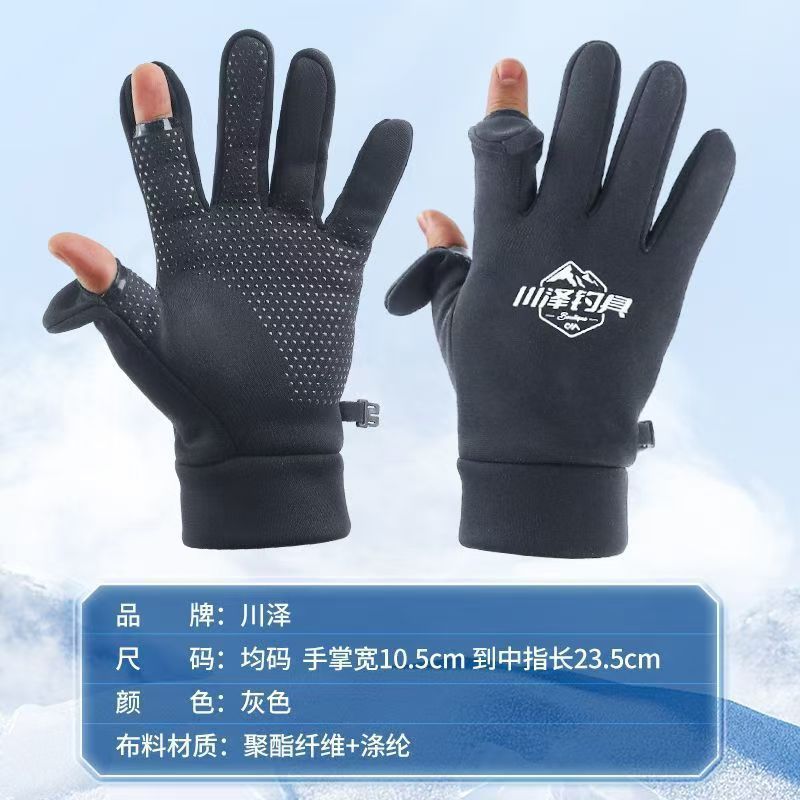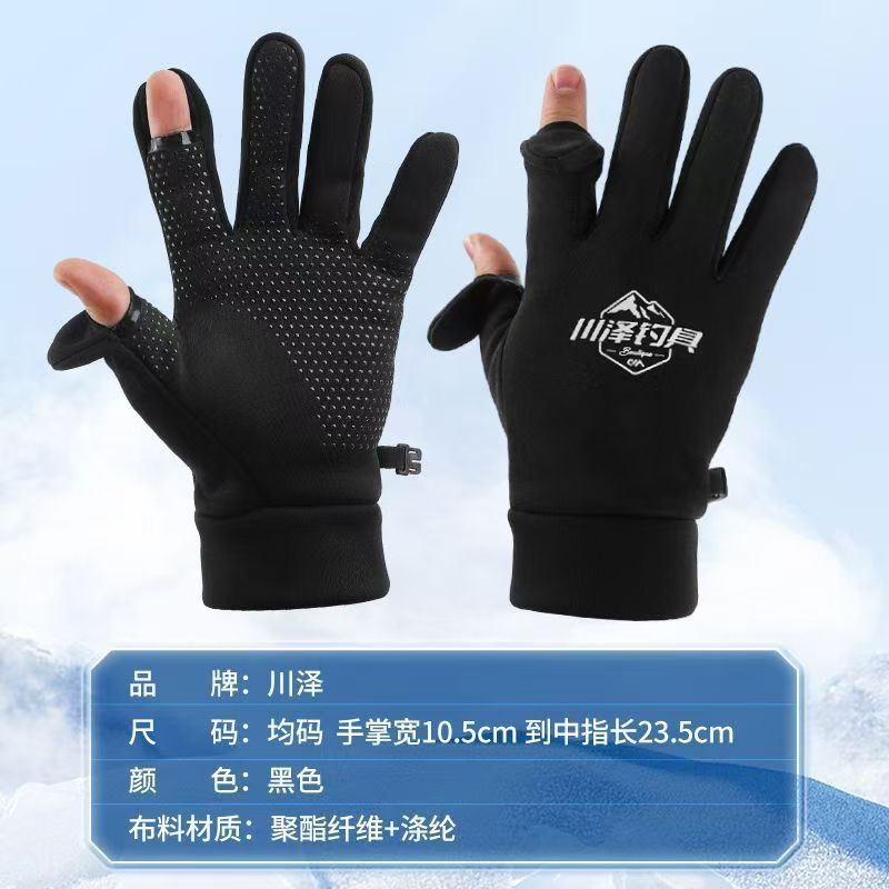 Chuanze winter velvet fishing gloves, waterproof, cold-proof, warm, two-finger flip cover, ice fishing road special outdoor gloves