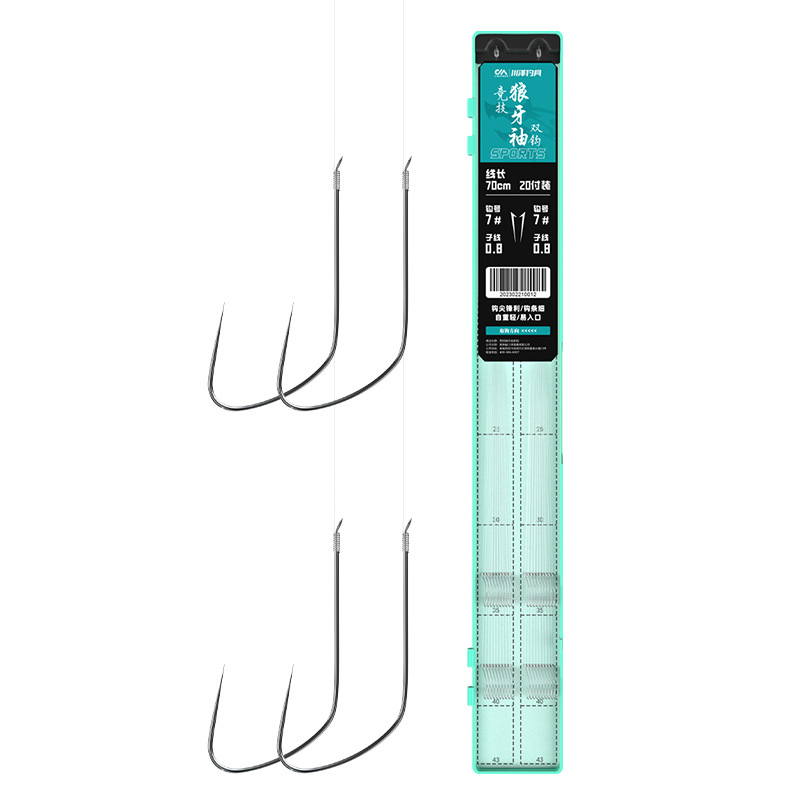 Chuanzezi Line Double Hook Competitive Wolf Tooth Sleeve Hook Finished Tie a full set of fish hooks Ultrafine anti-entanglement black pit crucian hook
