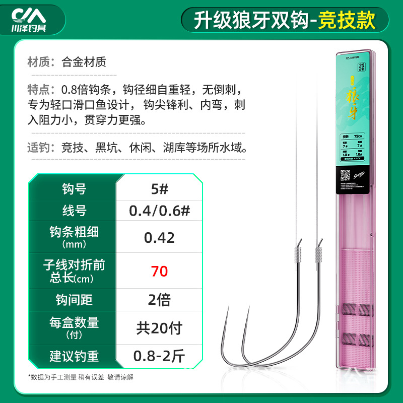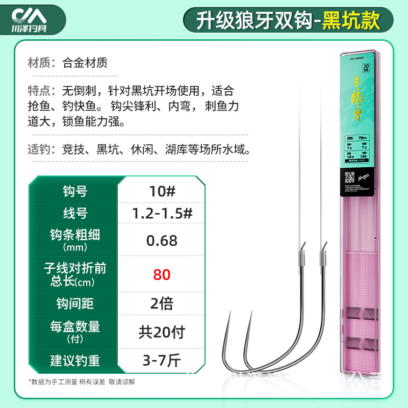 Chuanzezi Line Double Hook Wolf Tooth Athletic Black Pit Anti-winding Finished Fish Hook Tie Full Set Fishing Hook