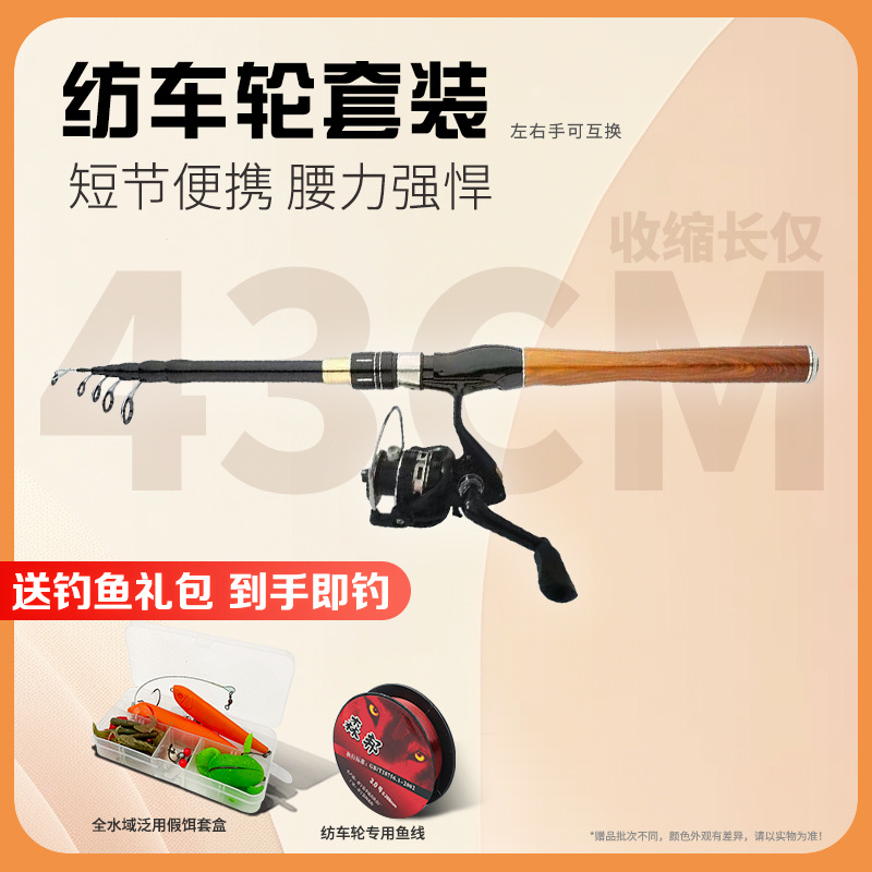 Fishing rod short joint retractable road pole portable carbon vibrating type long-distance throwing road pole spinning wheel water drop wheel black pole