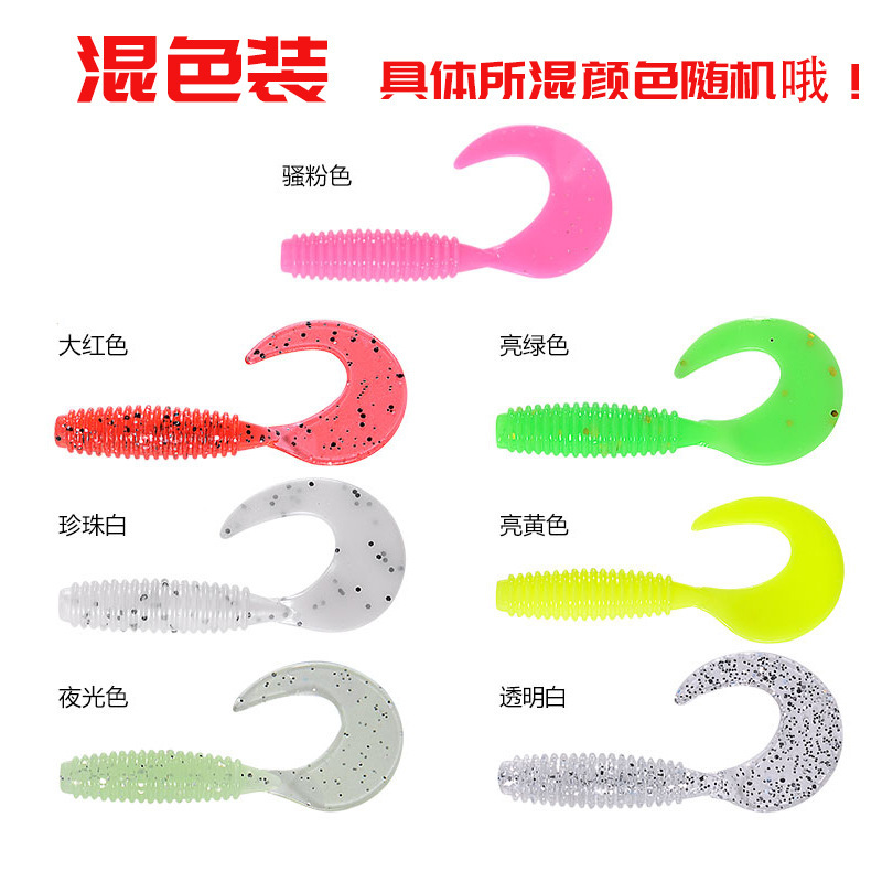 Japanese Luya bait t tail soft insect bait micro matter lead head hook set long-range throwing fake bait Perch Mandarin fish crooked mouth curled tail bait