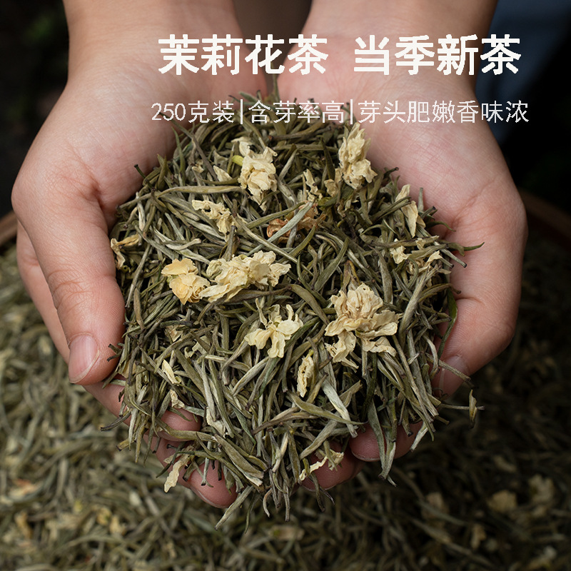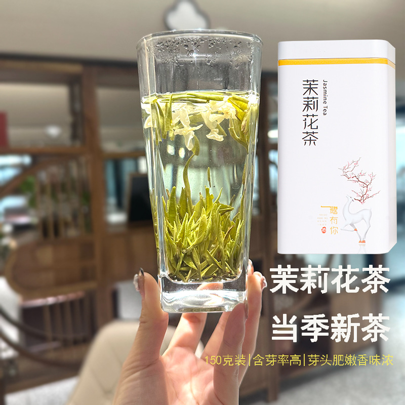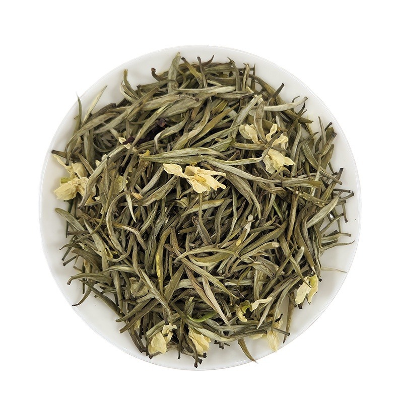 Jasmine silver needle 24-year-old new tea, golden needle, stir-fried flowers, snowflake jasmine tea, 150g, canned, Guangxi specialty tea