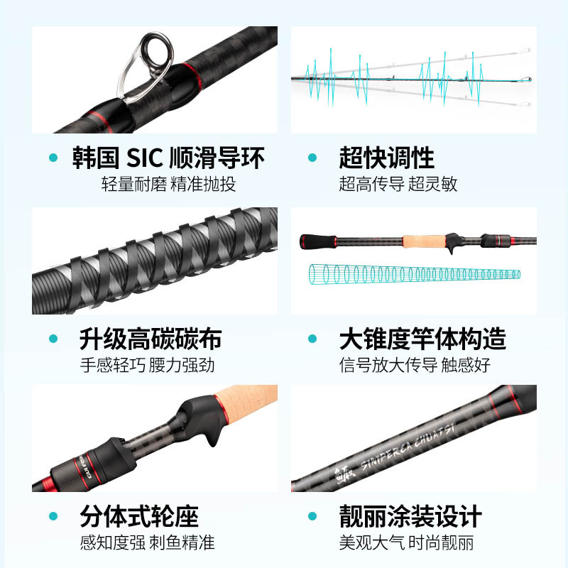 Kemailong big vertebra worm pole ultra-fast adjusting mandarin fish luya pole gun handle black pit perch pole carbon high-sensitivity worm pole