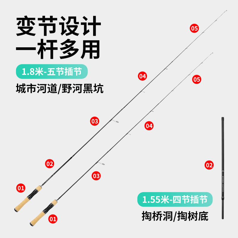 Kemei Dragon Autumn Wood Multi-section Stream Horse Mouth Rod Micro Objects Fuji Guide Ring Variable Section Travel Portable Luya Pole Set